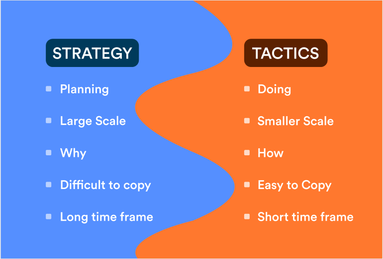 Strategy is the blueprint of a house. Tactics are the tools and construction methods used to build it.