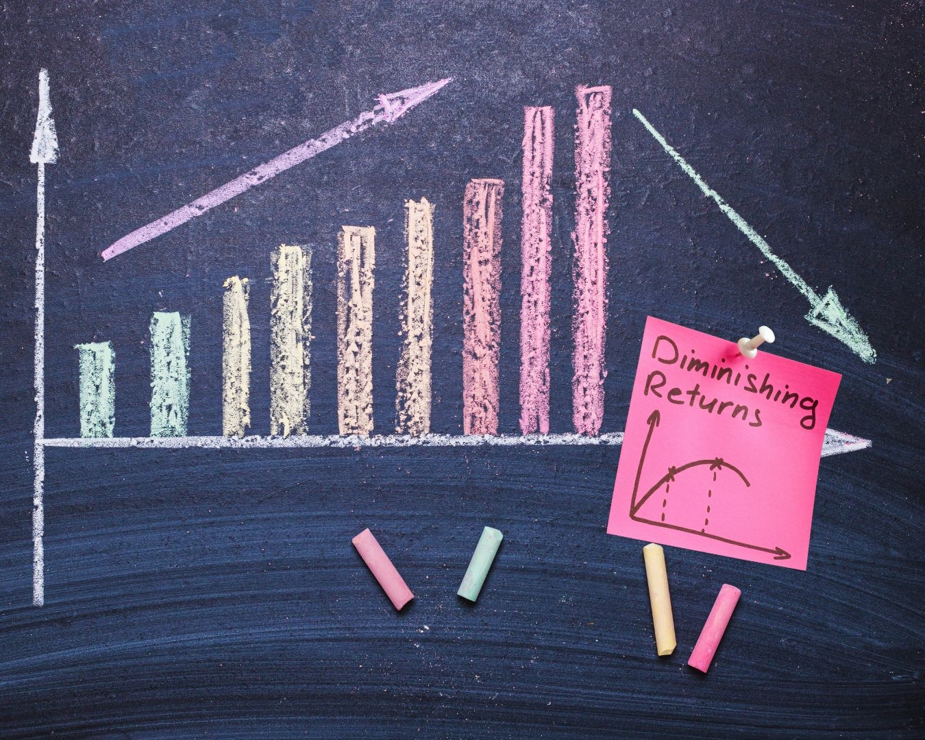 The law of diminishing returns states that when more of one input is added to a situation where other important inputs are fixed, the additional benefit from each new unit of that input will eventually shrink.