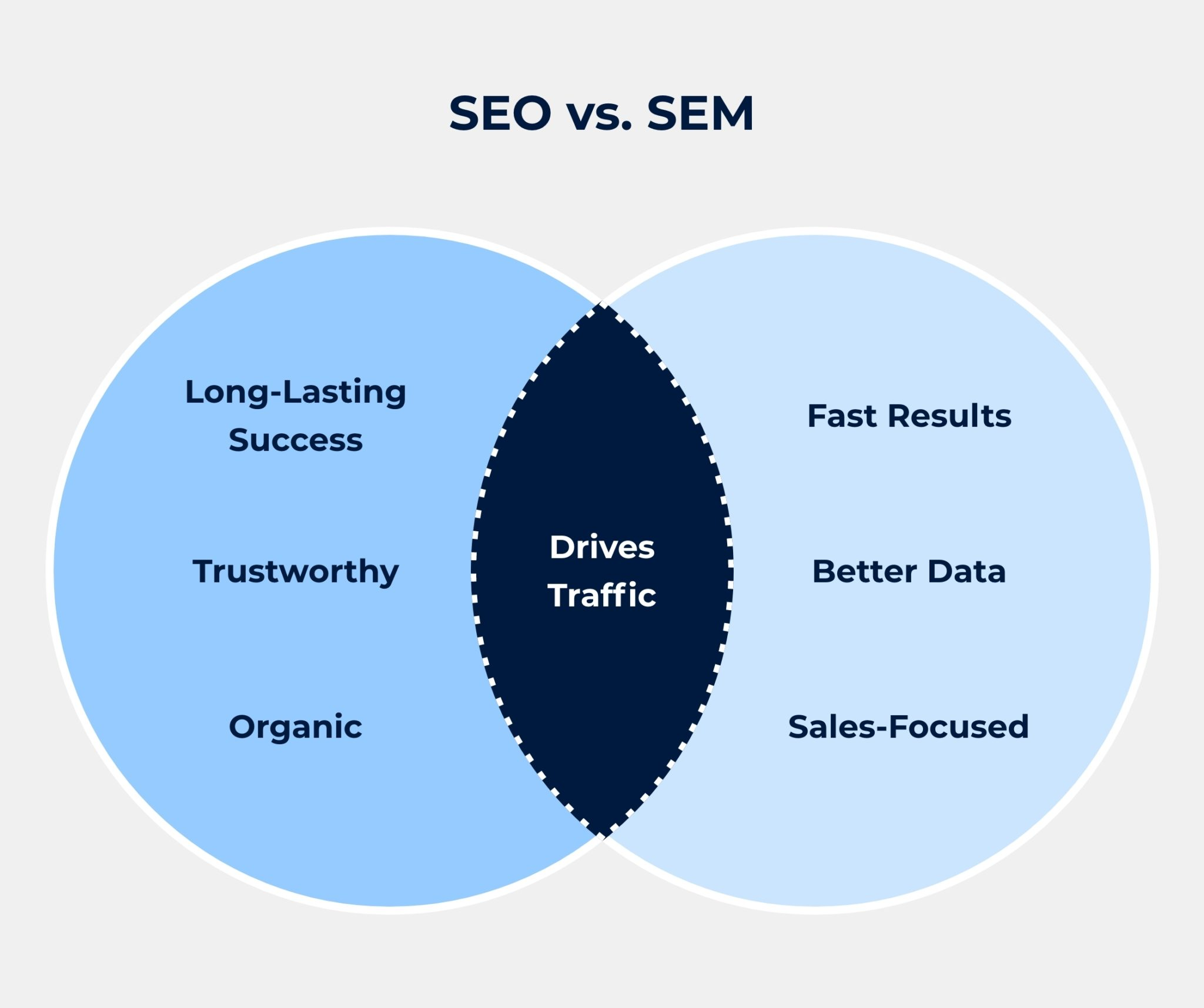 SEM offers speed, control, and precise targeting. SEO offers trust, stability, and compounding growth. Each has strengths and weaknesses, and neither can fully replace the other.