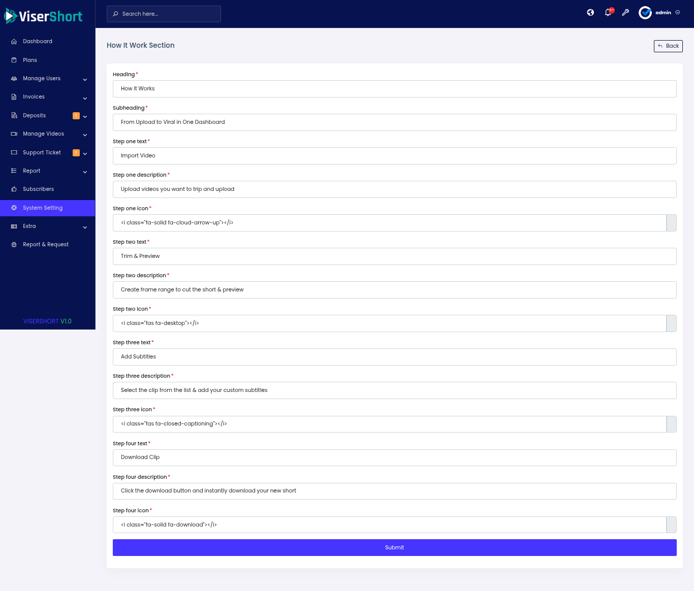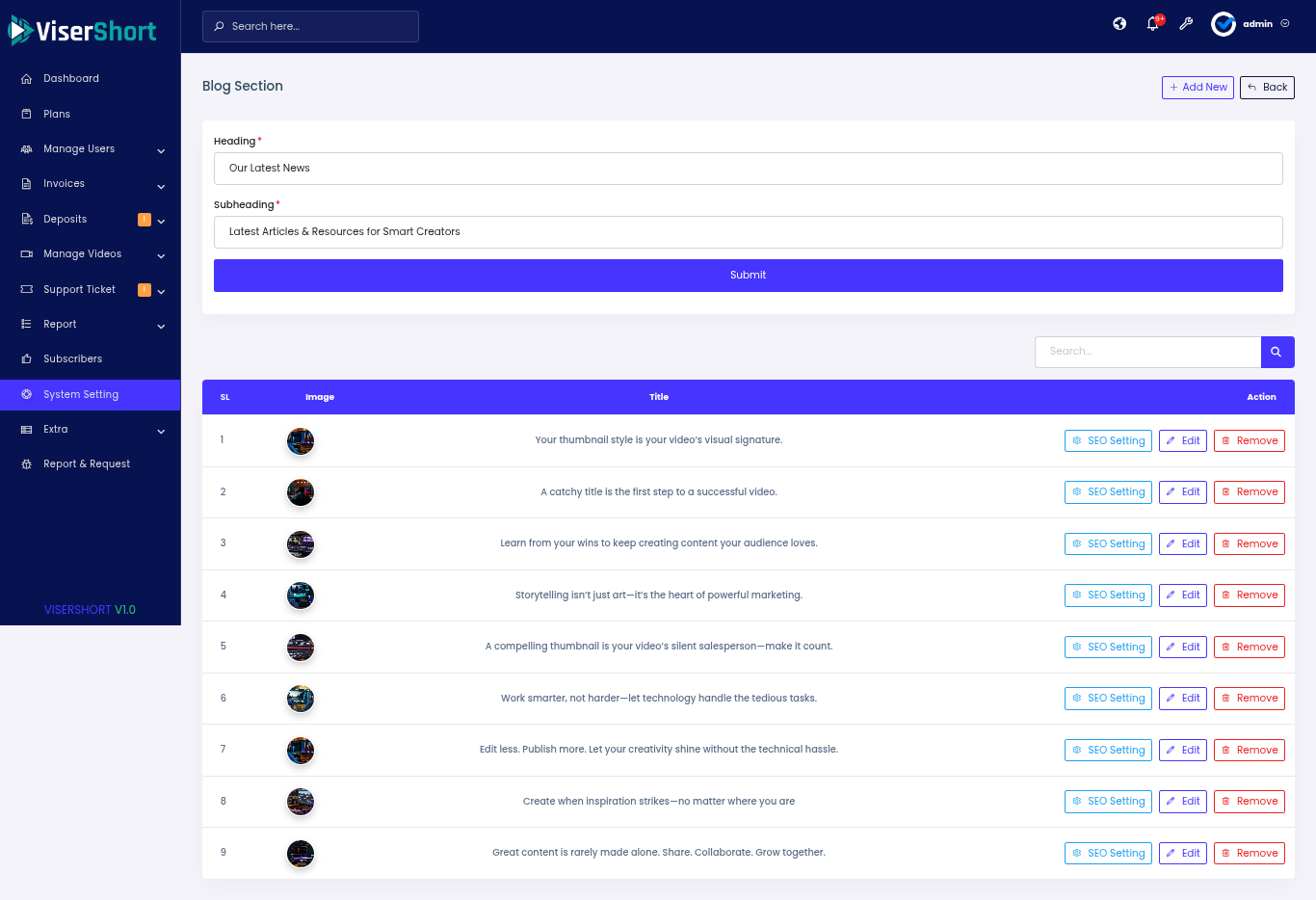 Website integration with APIs of social networks like YouTube, Instagram, TikTok, and Facebook. Website is a tool that saves time, effort, and manual work by letting creators, influencers, and businesses quickly repurpose their video content into short videos and auto-publish them across social platforms. ViserShort supports Bulk uploads. It processes and schedules dozens of clips at once. One video can be adapted for TikTok, YouTube Shorts, Instagram Reels, and more. Our System Support Team collaboration. creators, editors, and managers can work together in one workspace.