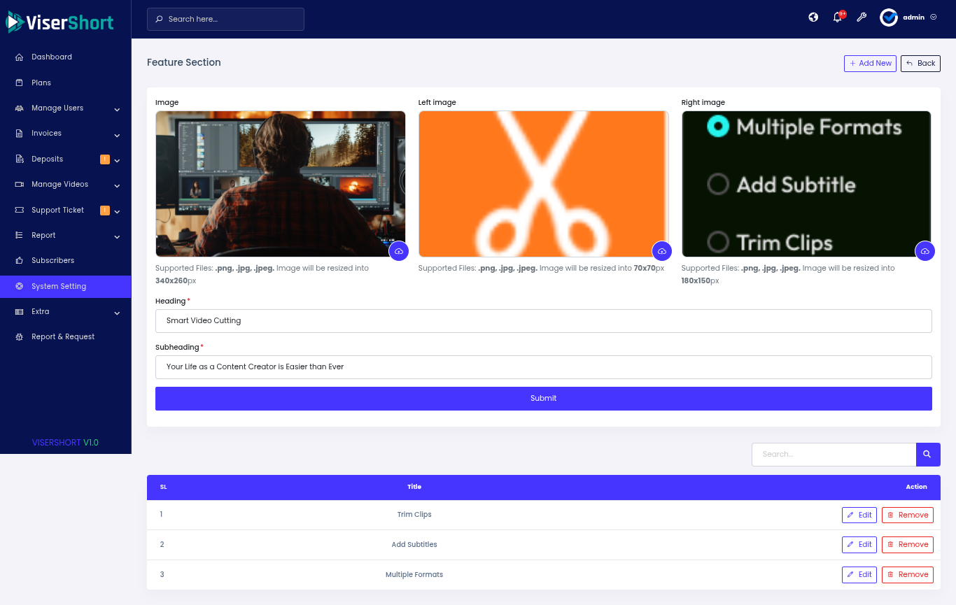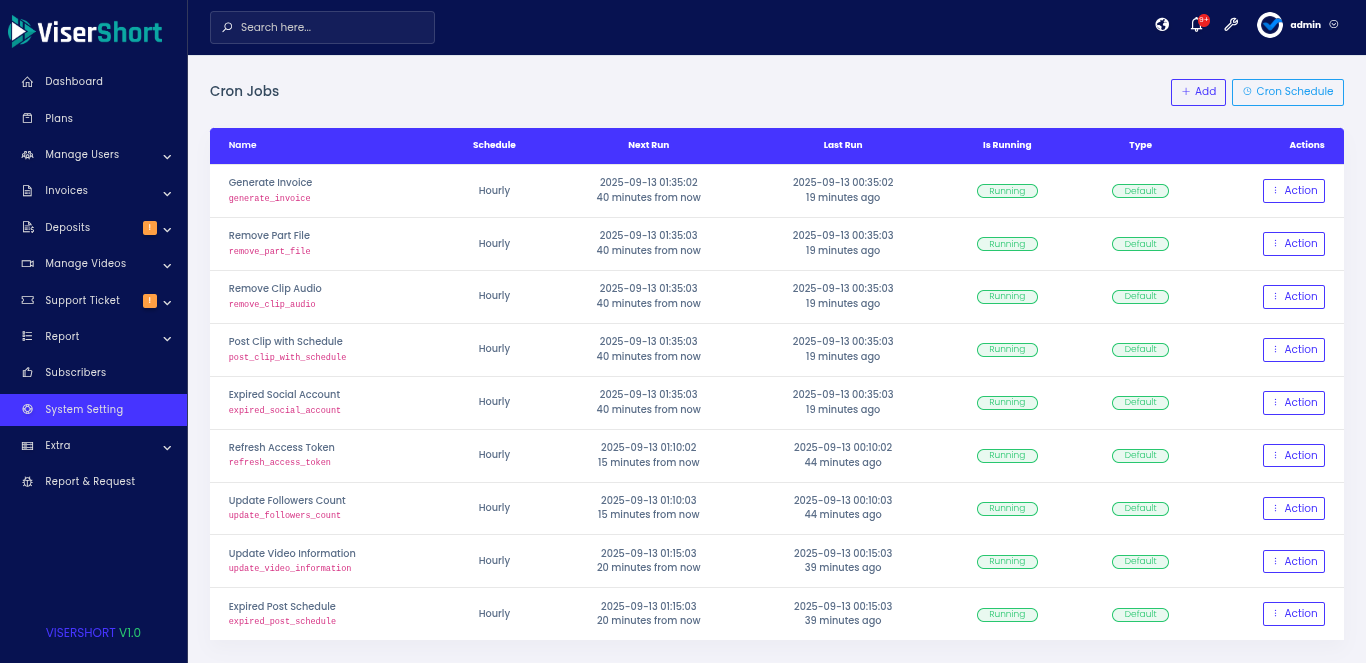 Website integration with APIs of social networks like YouTube, Instagram, TikTok, and Facebook. Website is a tool that saves time, effort, and manual work by letting creators, influencers, and businesses quickly repurpose their video content into short videos and auto-publish them across social platforms. ViserShort supports Bulk uploads. It processes and schedules dozens of clips at once. One video can be adapted for TikTok, YouTube Shorts, Instagram Reels, and more. Our System Support Team collaboration. creators, editors, and managers can work together in one workspace.