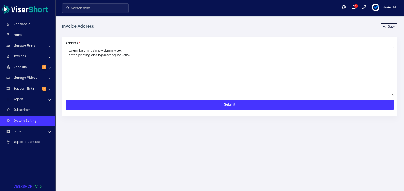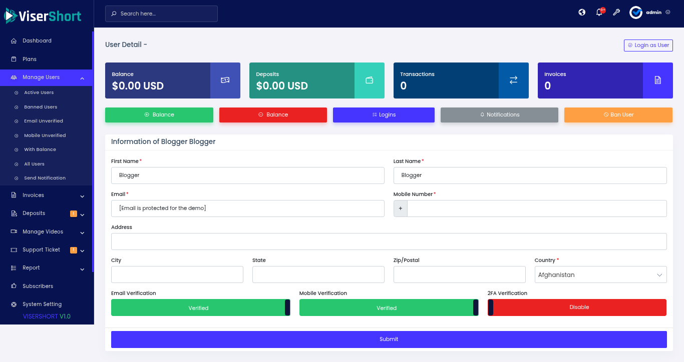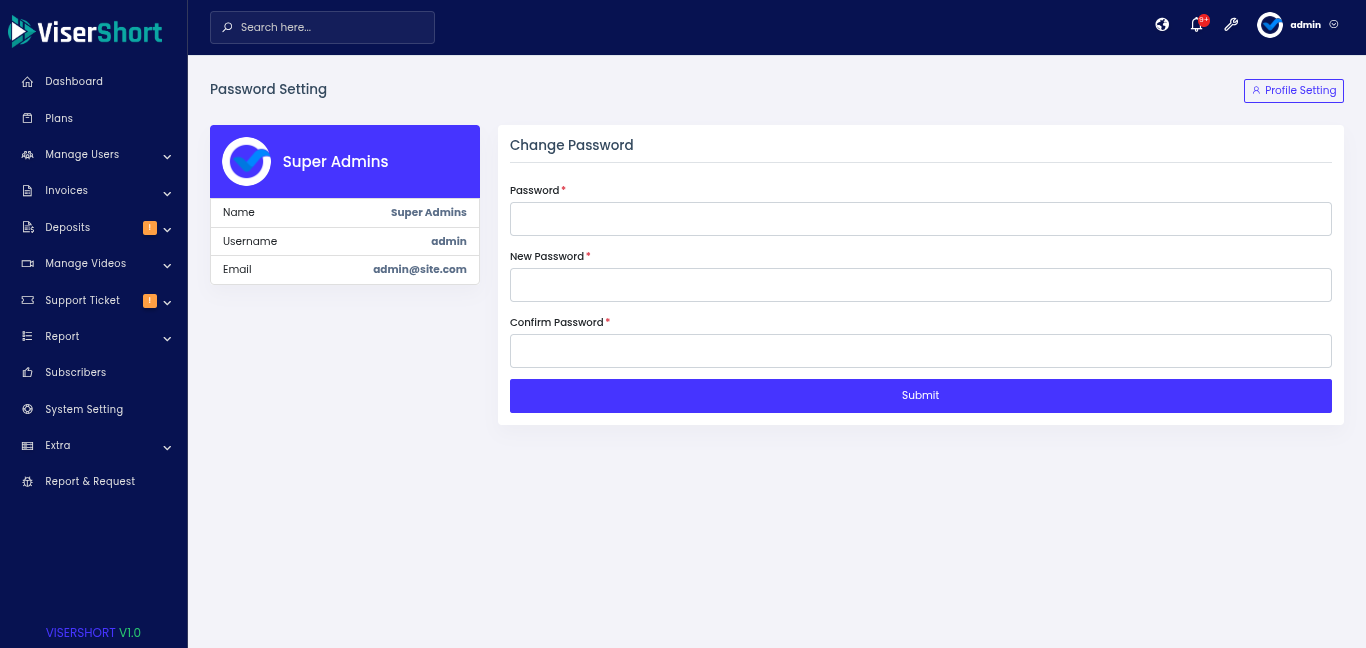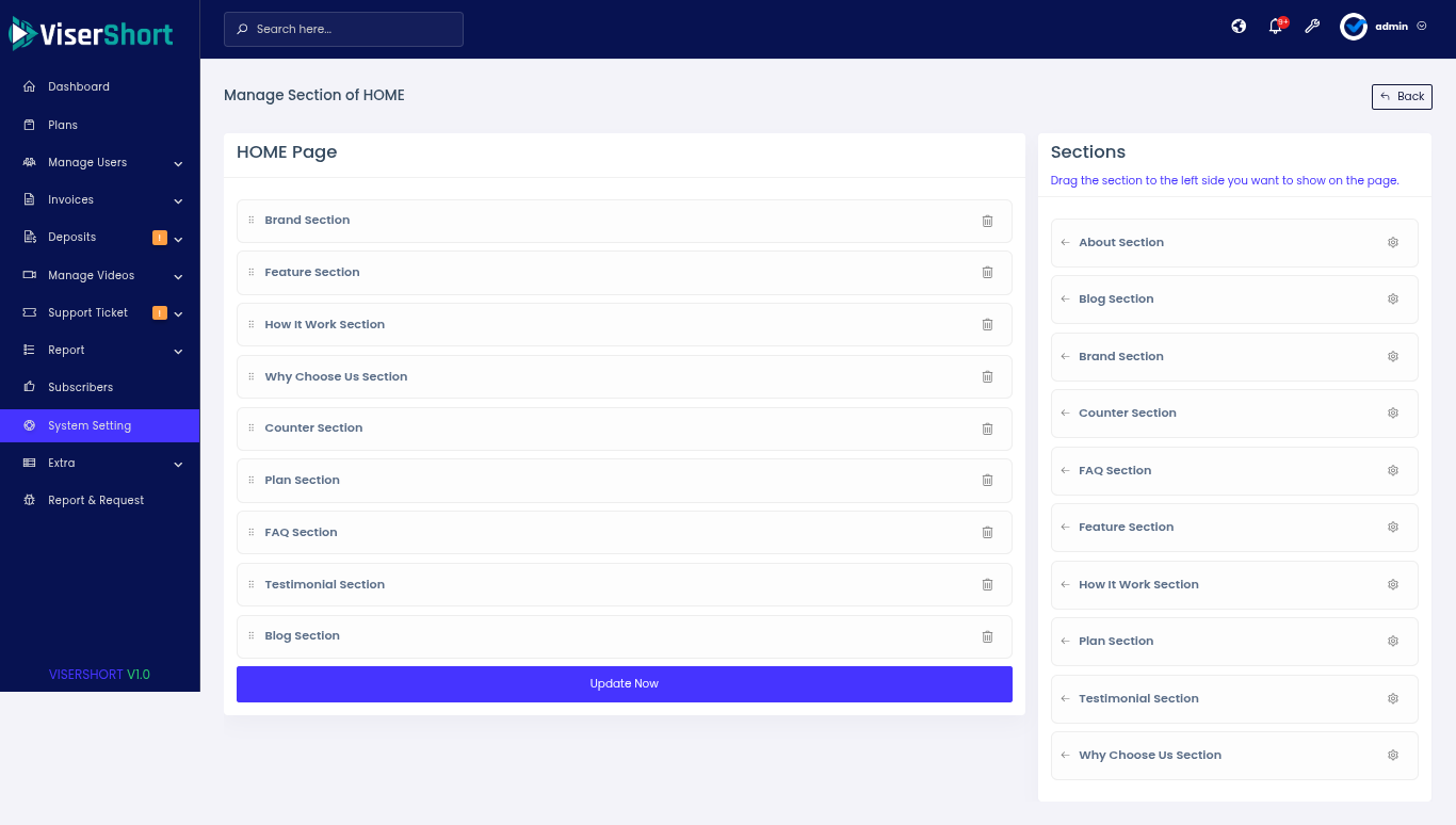 Admin Panel Features: