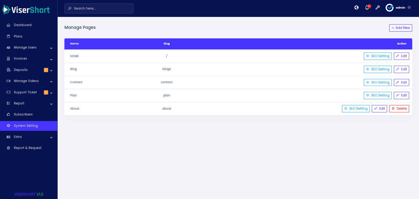 - Policy Pages Management.