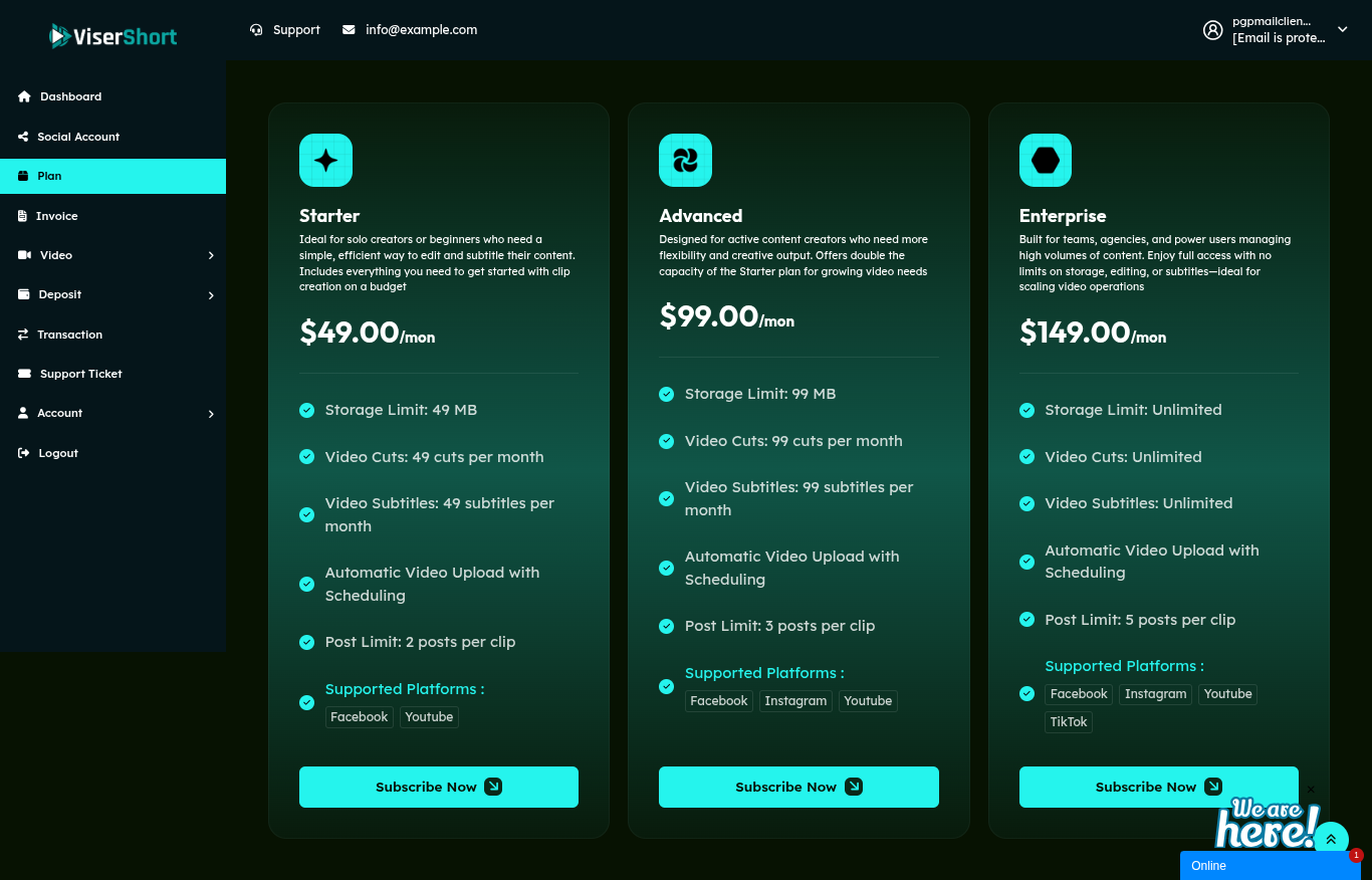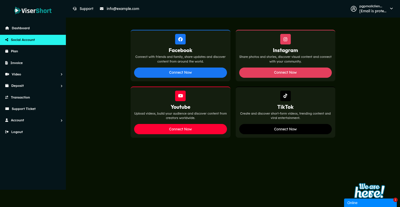 Website integration with APIs of social networks like YouTube, Instagram, TikTok, and Facebook. Website is a tool that saves time, effort, and manual work by letting creators, influencers, and businesses quickly repurpose their video content into short videos and auto-publish them across social platforms. ViserShort supports Bulk uploads. It processes and schedules dozens of clips at once. One video can be adapted for TikTok, YouTube Shorts, Instagram Reels, and more. Our System Support Team collaboration. creators, editors, and managers can work together in one workspace.