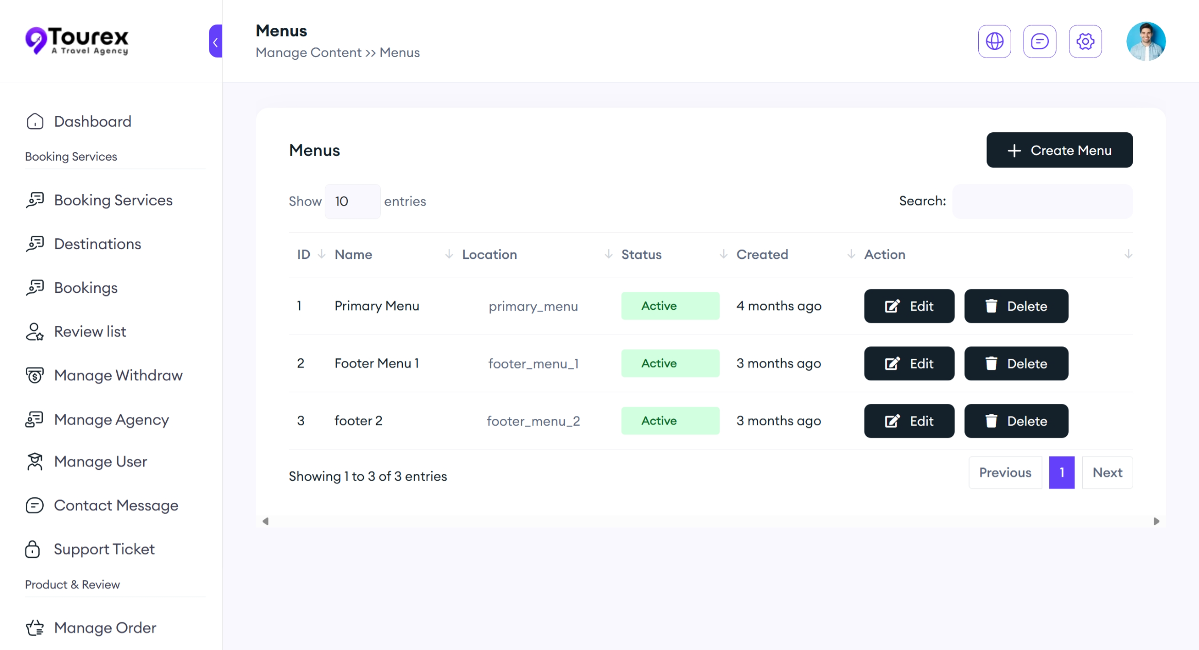 Travel and Hotel Booking Destination create/edit/delete option