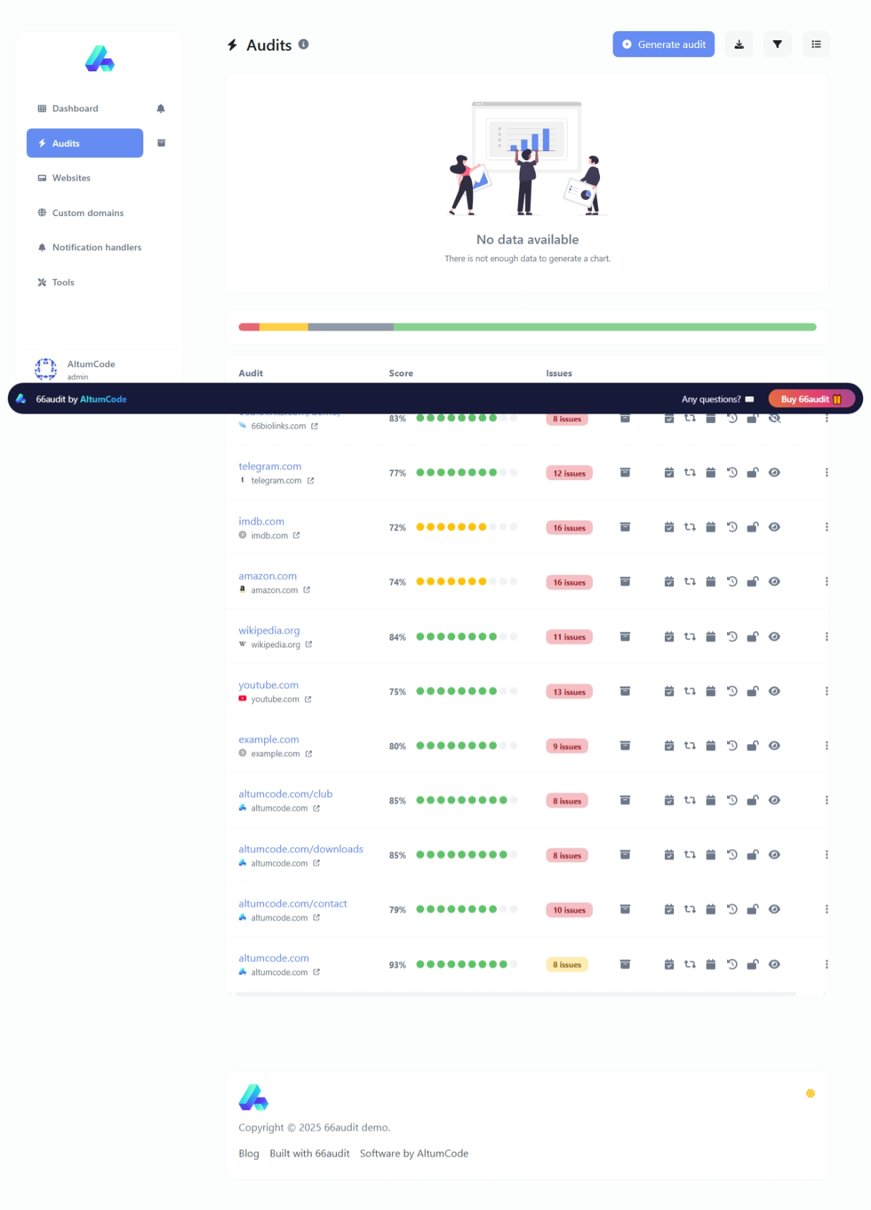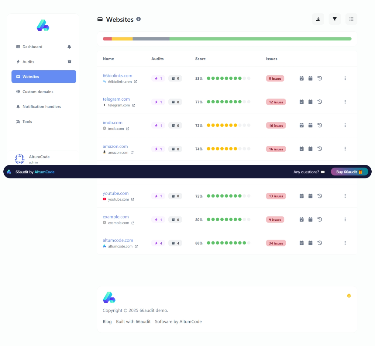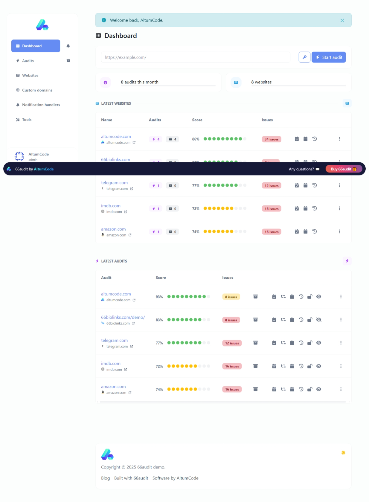 Schedule automated audit re-checks for your URLs and let 66audit monitor them on repeat.