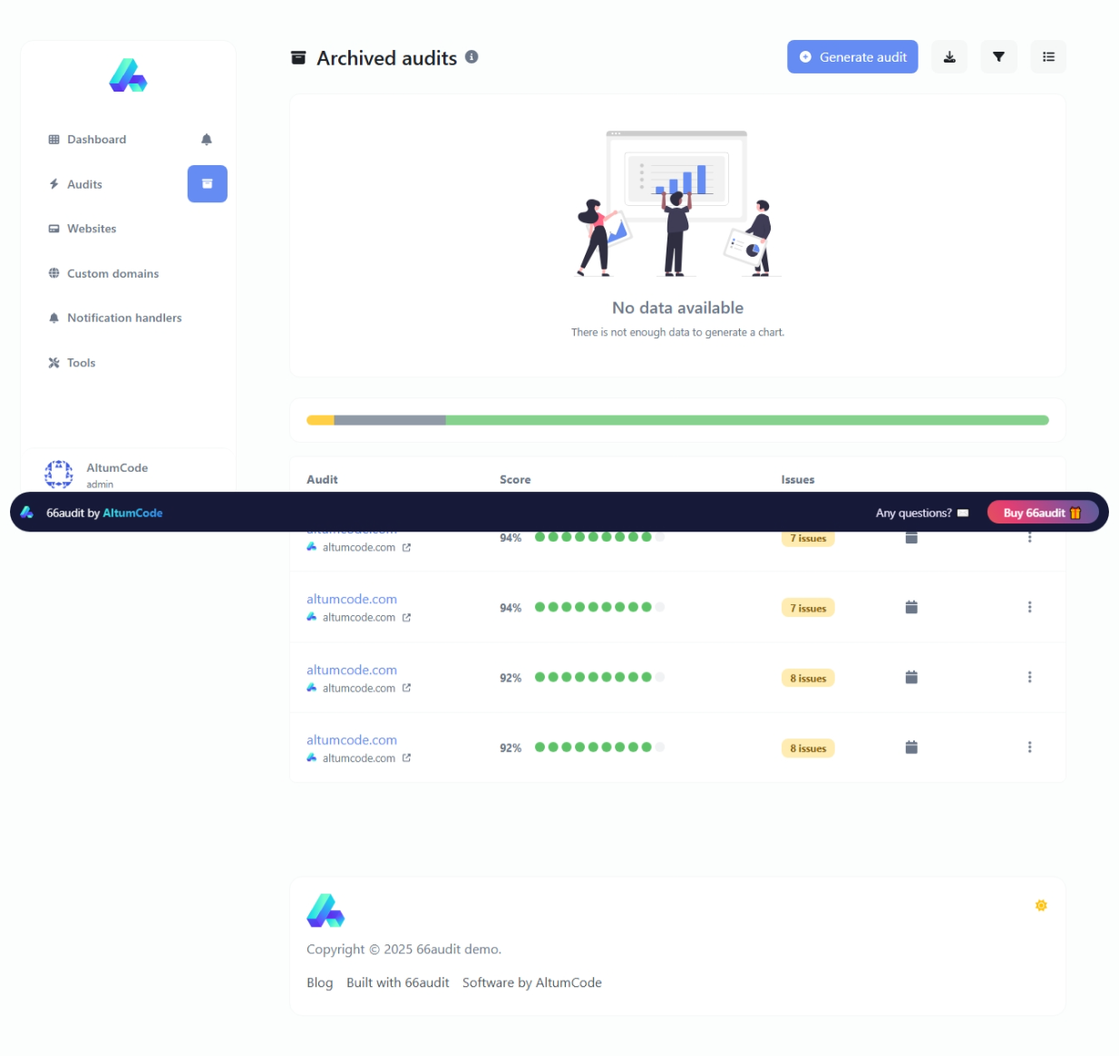 Keep unlimited audit history and archives, then compare results over time to measure SEO improvements.