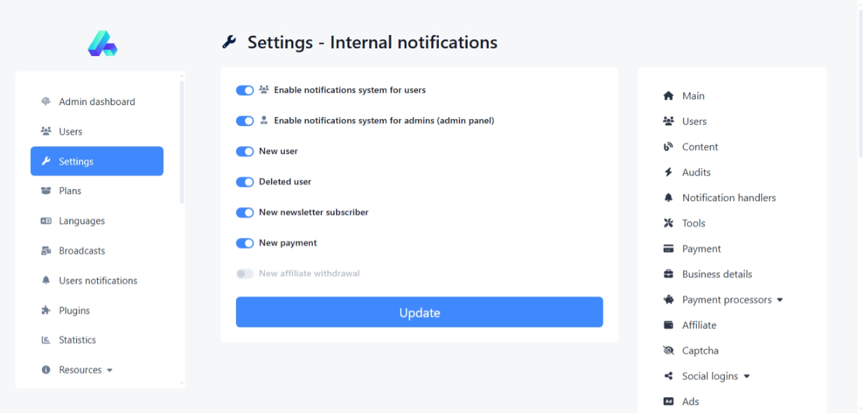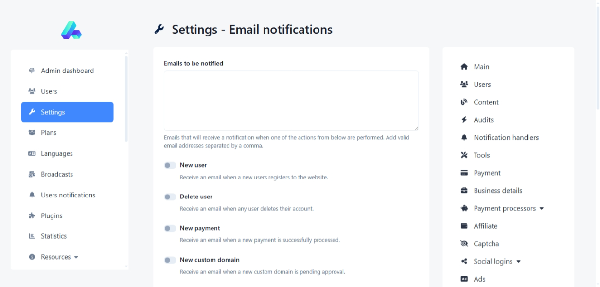 Send bulk emails, segment users, and track performance directly from the admin panel.