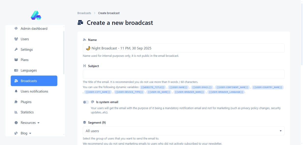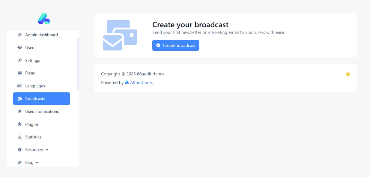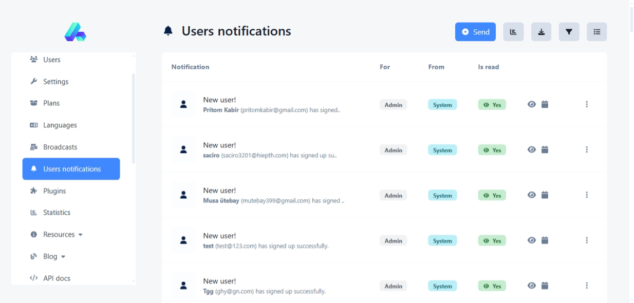 Send bulk emails, segment users, and track performance directly from the admin panel.