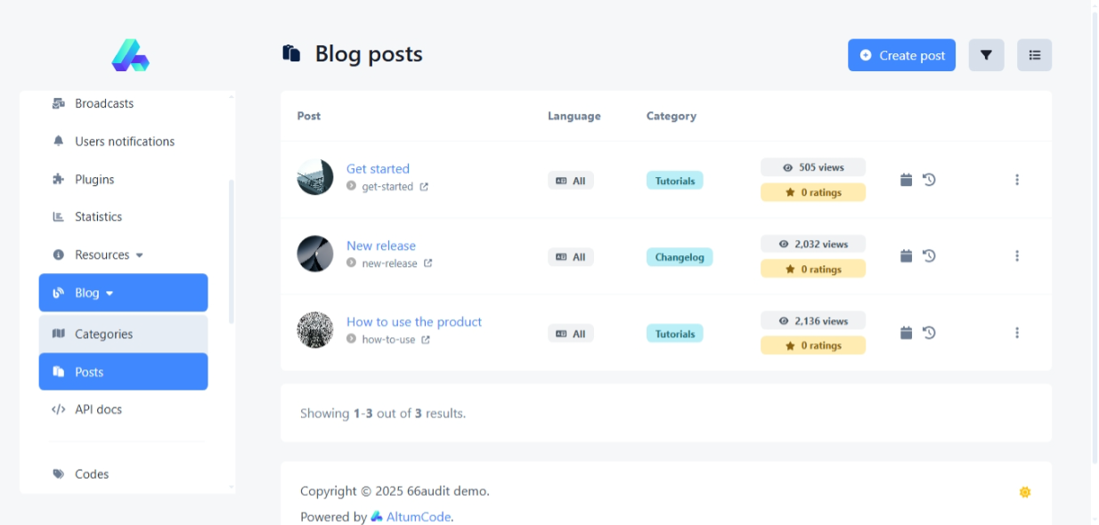 Fast and simple blog management with categories, popular posts, SEO optimization, and full translation support.