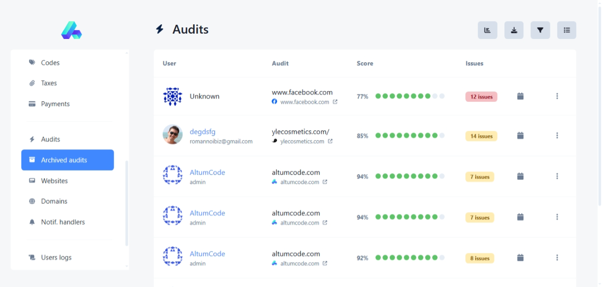 Keep unlimited audit history and archives, then compare results over time to measure SEO improvements.