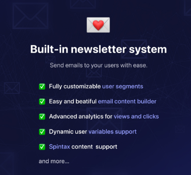 Send bulk emails, segment users, and track performance directly from the admin panel.