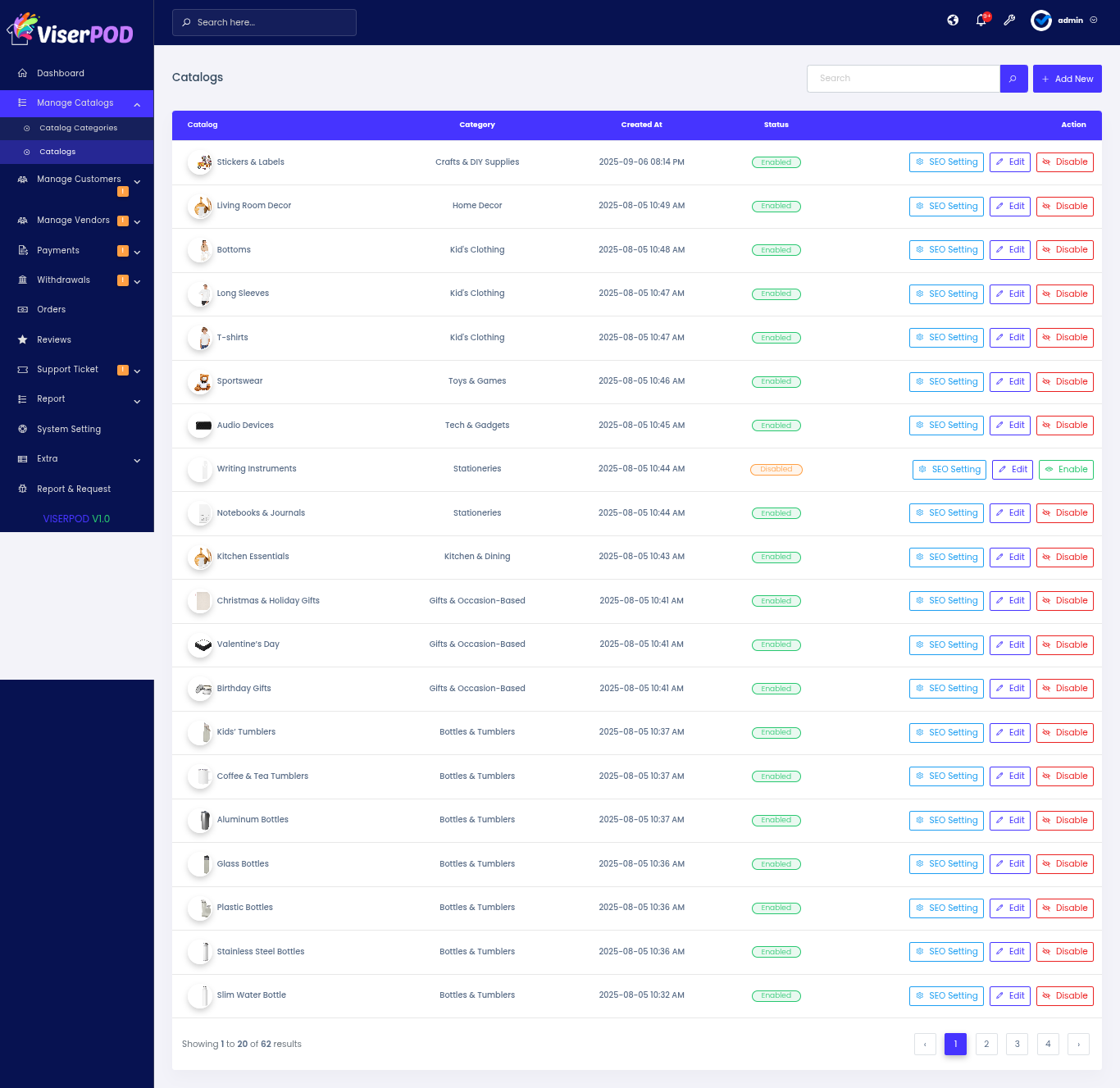 Manage catalogs, pages, SEO settings, KYC, policy pages, GDPR compliance, and more from an easy-to-use admin panel.
