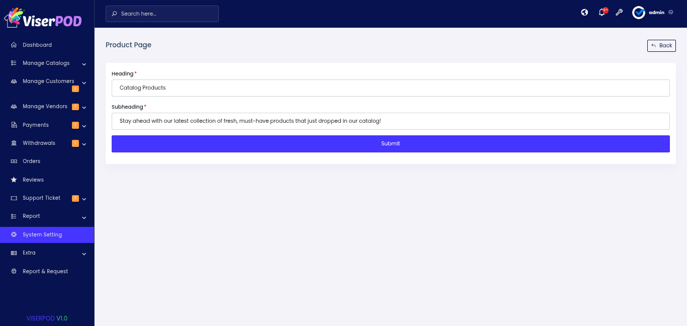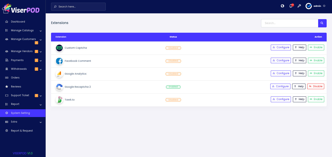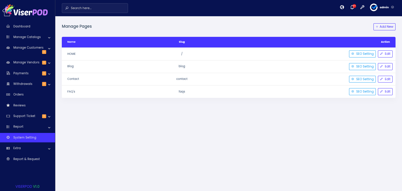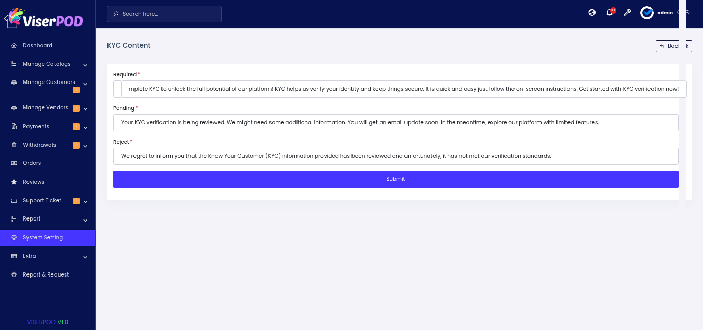 Manage catalogs, pages, SEO settings, KYC, policy pages, GDPR compliance, and more from an easy-to-use admin panel.