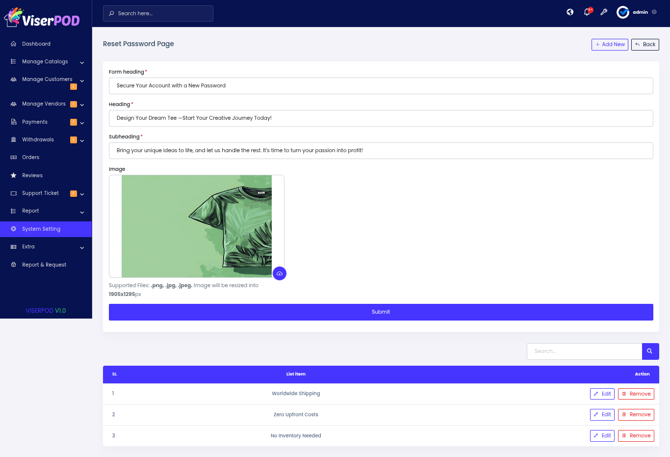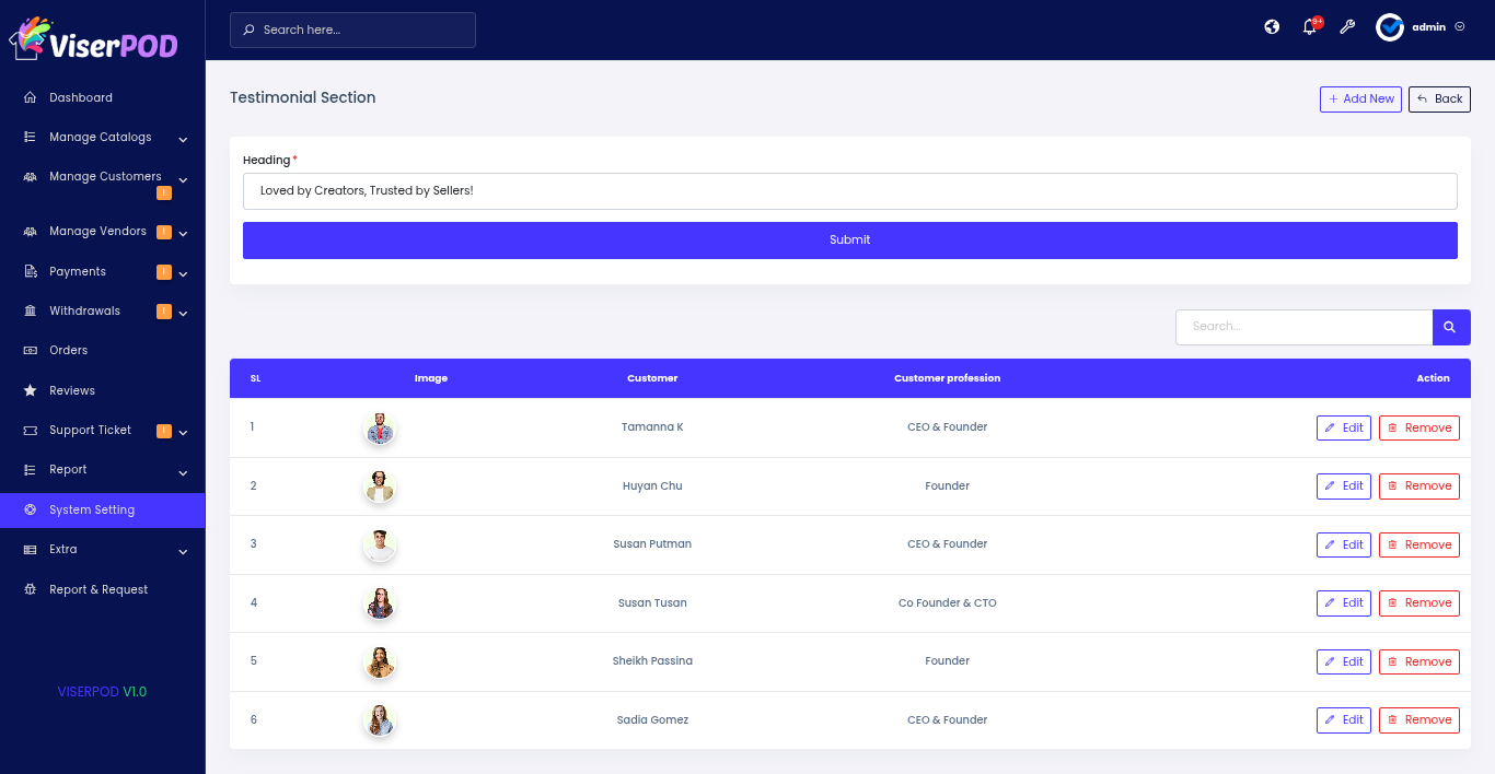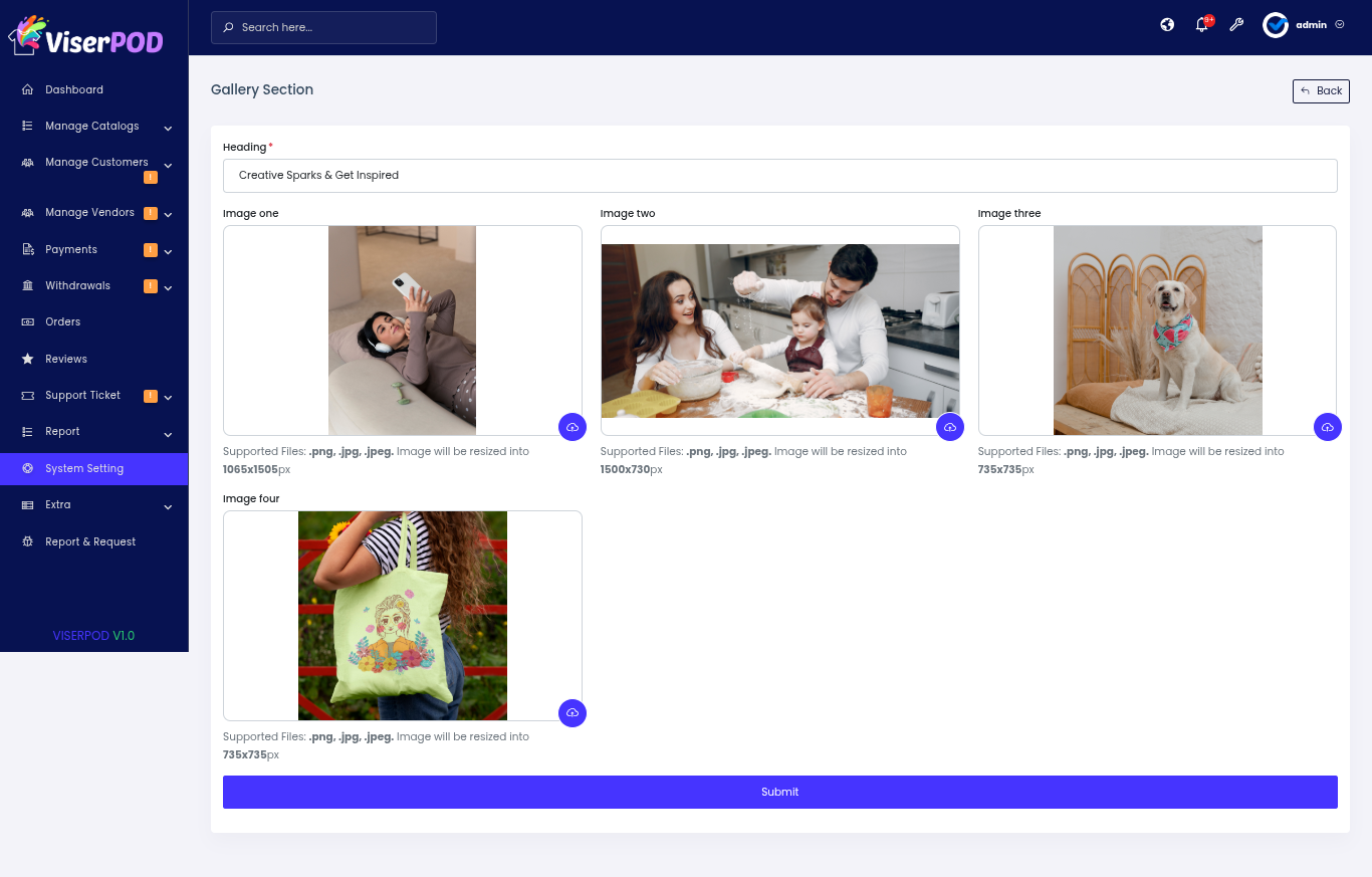 Dedicated panels for customers, vendors, and admin to manage designs, orders, transactions, withdrawals, and reports seamlessly.