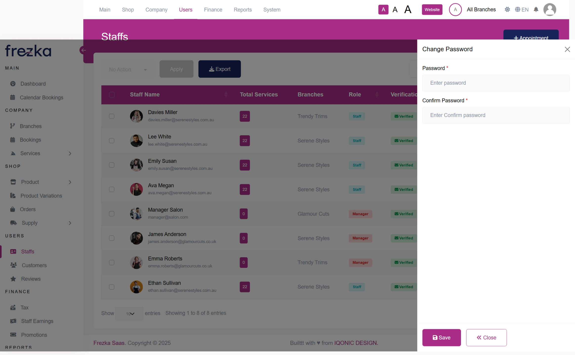 Website is a powerful cloud based SaaS platform designed for salon and spa businesses, offering seamless appointment booking, staff management, and client engagement. Built with Laravel, Frezka SaaS provides a scalable and intuitive solution that helps salon owners automate operations, enhance client experiences, and drive business growth.