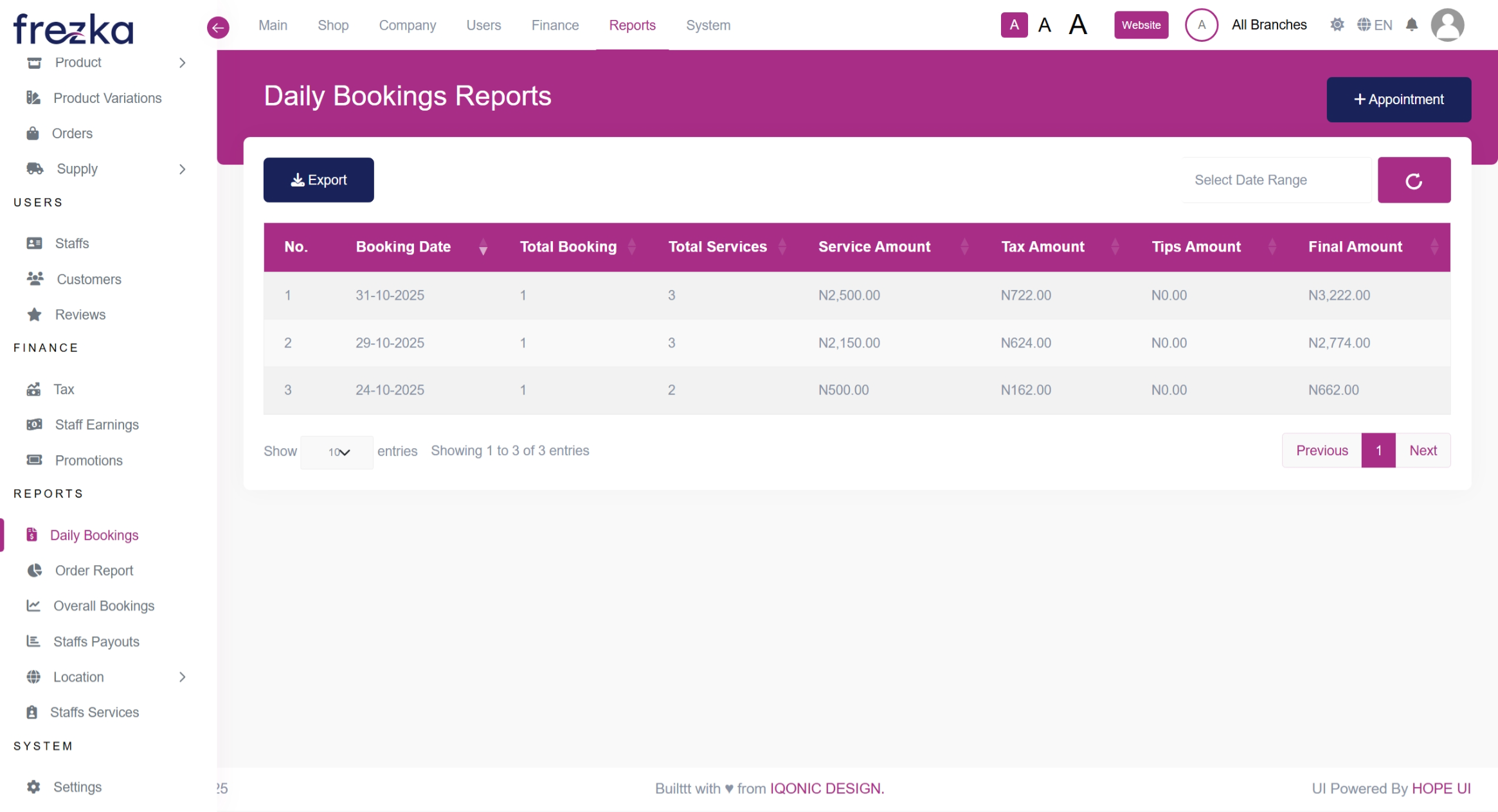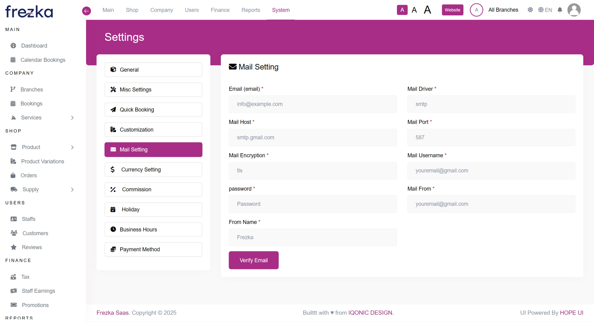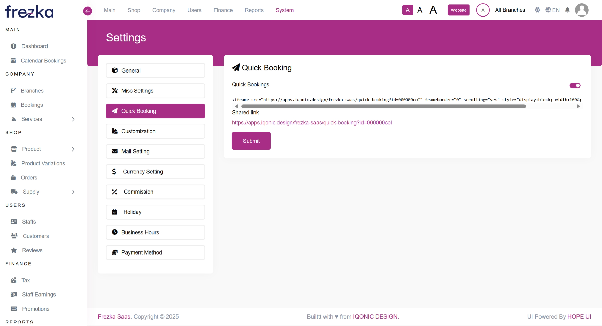 Website is a powerful cloud based SaaS platform designed for salon and spa businesses, offering seamless appointment booking, staff management, and client engagement. Built with Laravel, Frezka SaaS provides a scalable and intuitive solution that helps salon owners automate operations, enhance client experiences, and drive business growth.