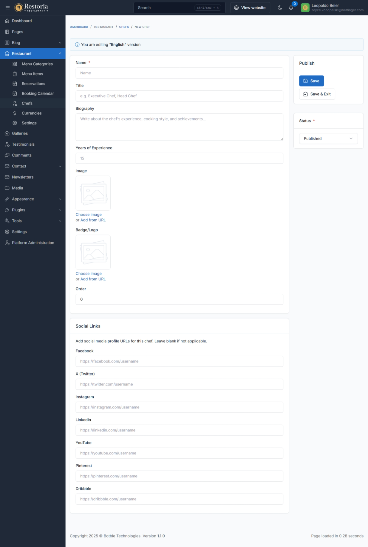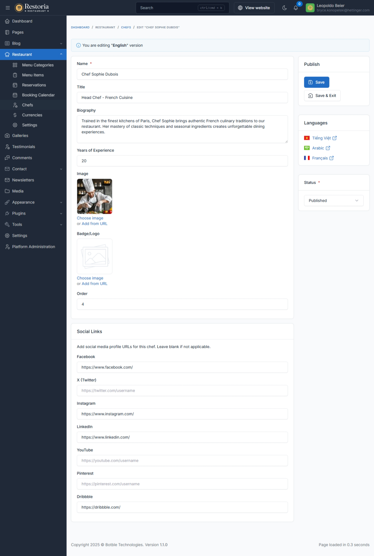 Chef Portfolio Pages: Dedicated pages to showcase your culinary team.