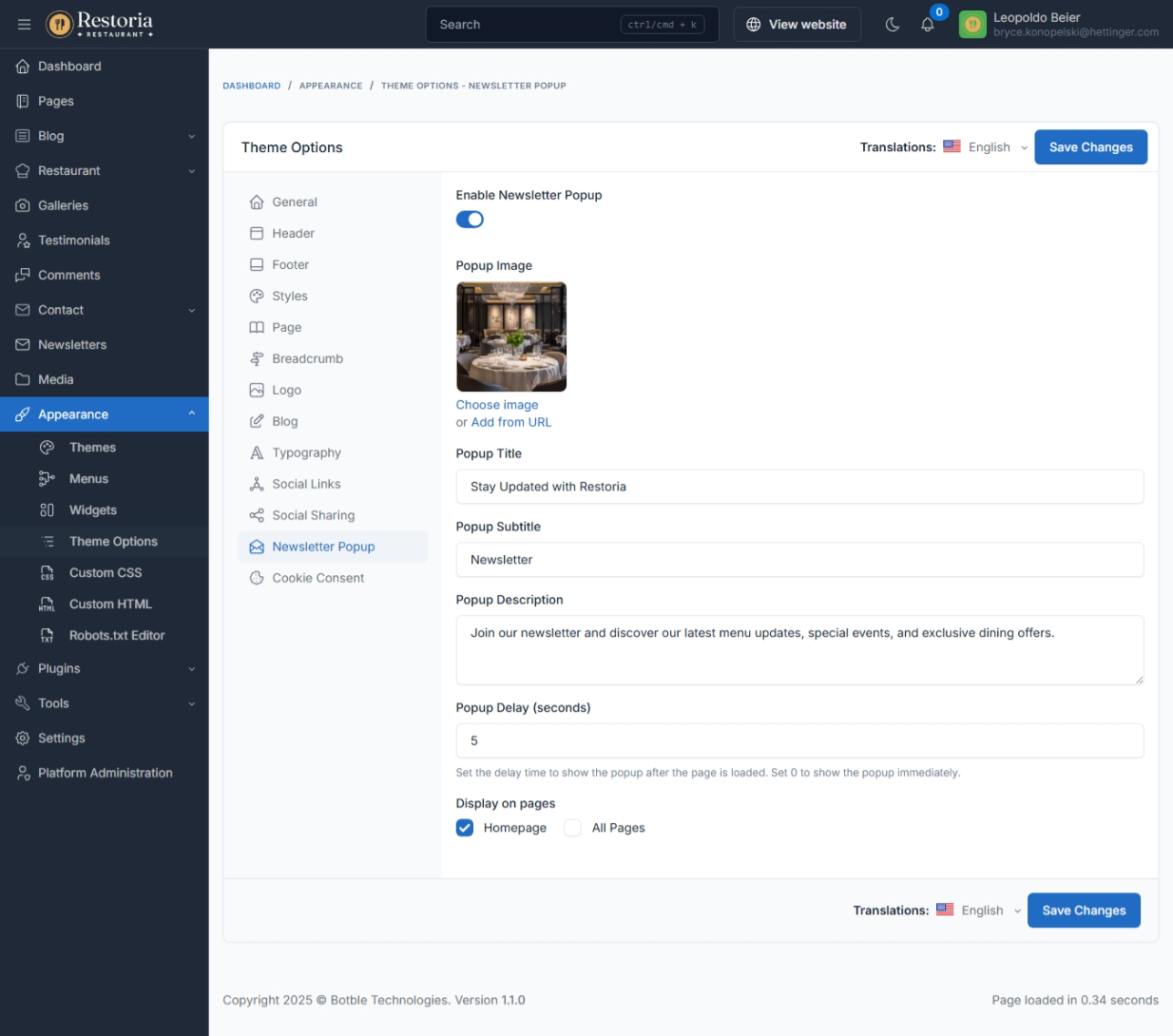 Gallery Sections: Beautiful image galleries to showcase your restaurant ambiance and dishes.