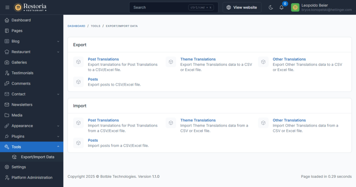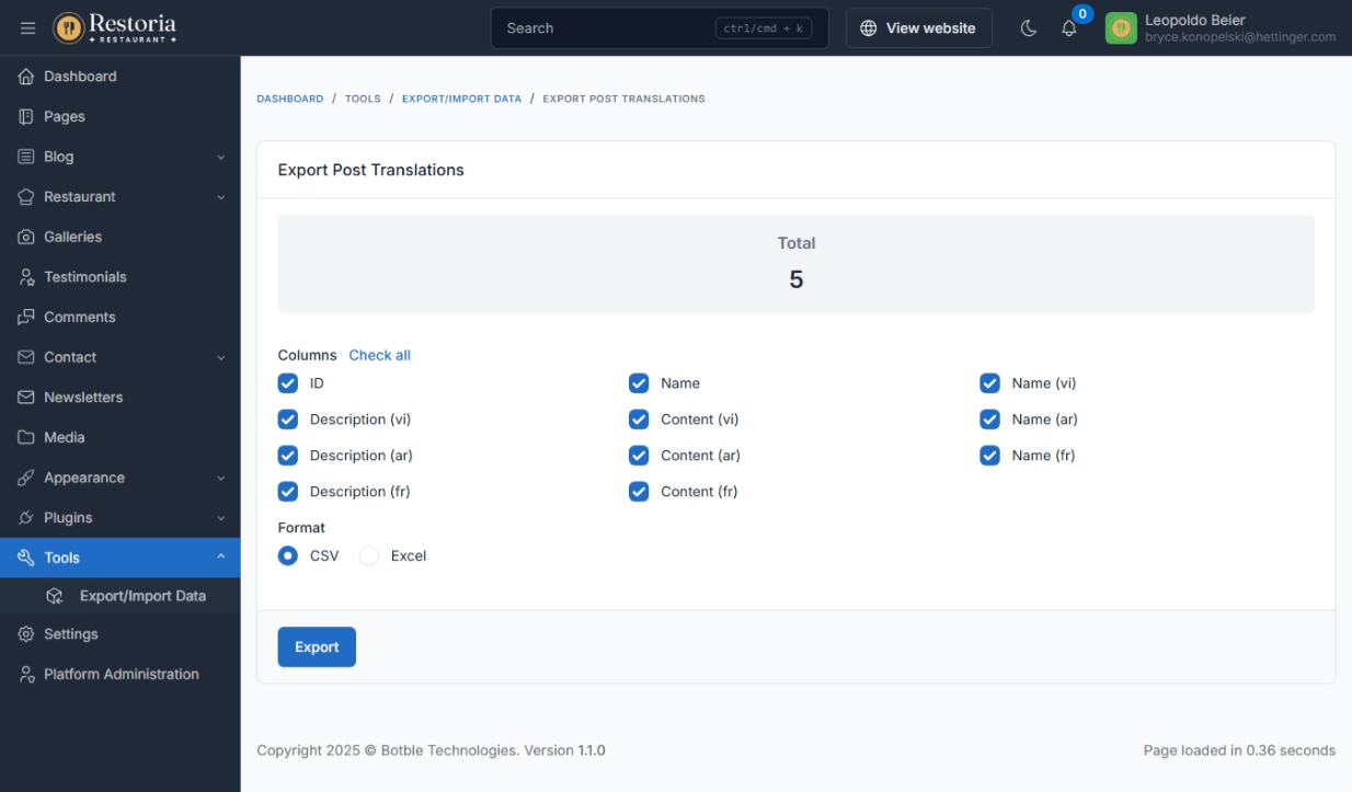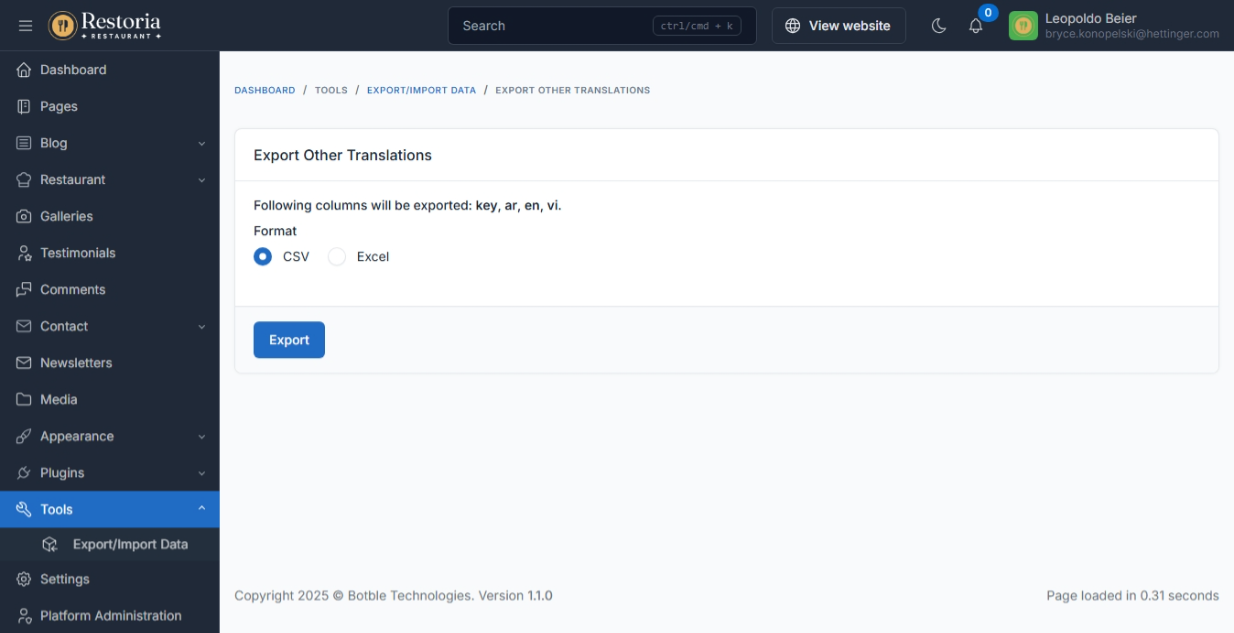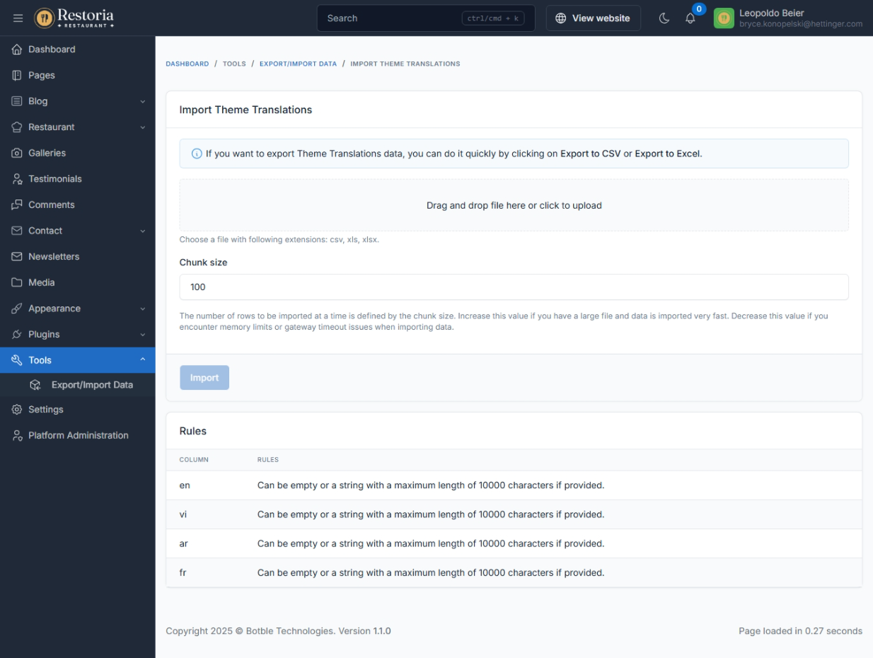 Translation tool: easy to translate front theme and admin panel to your language.