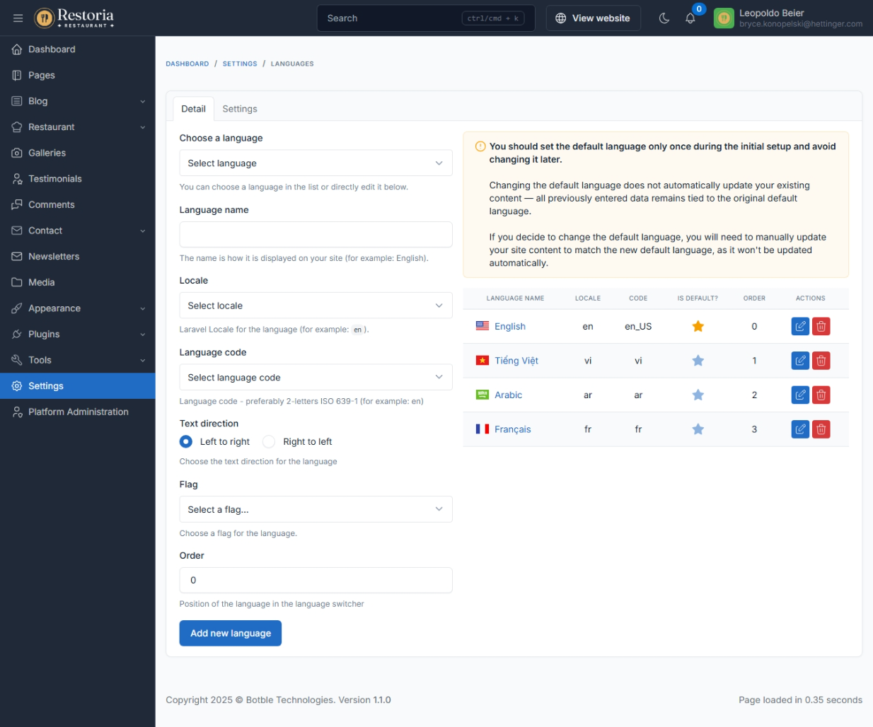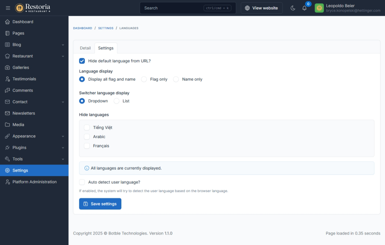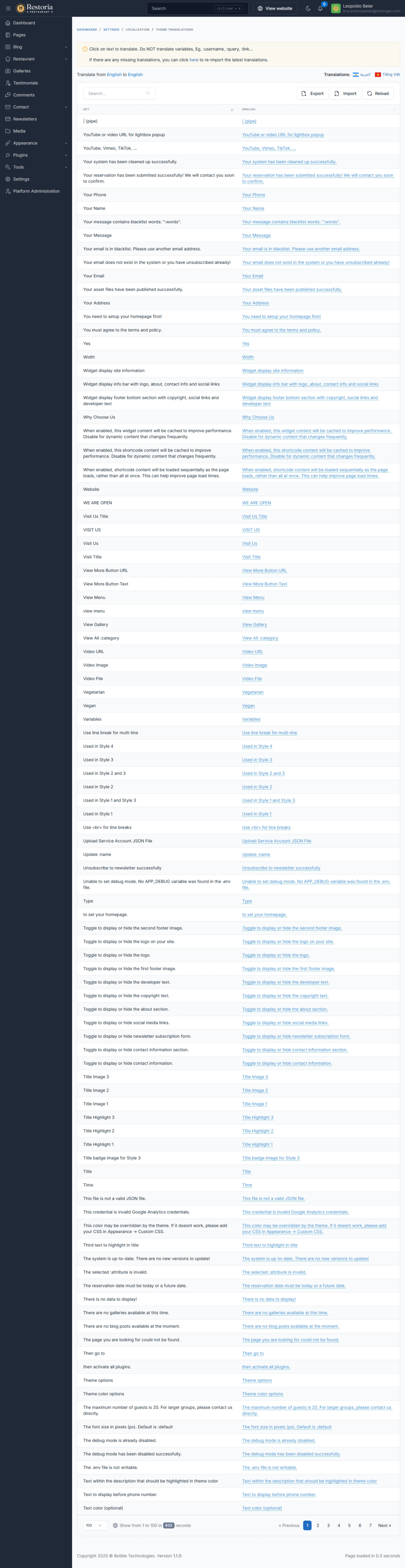 Translation tool: easy to translate front theme and admin panel to your language.