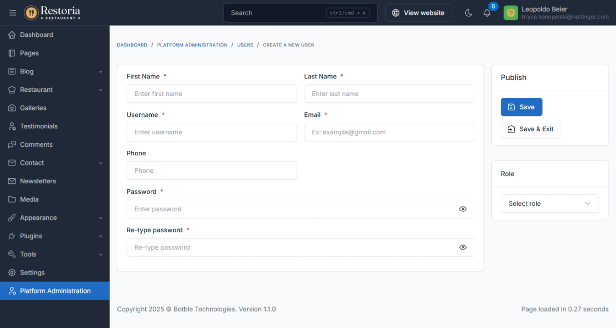 Development of the Luxury Restaurant Laravel Website