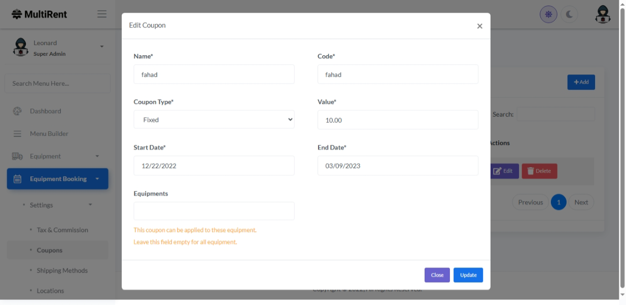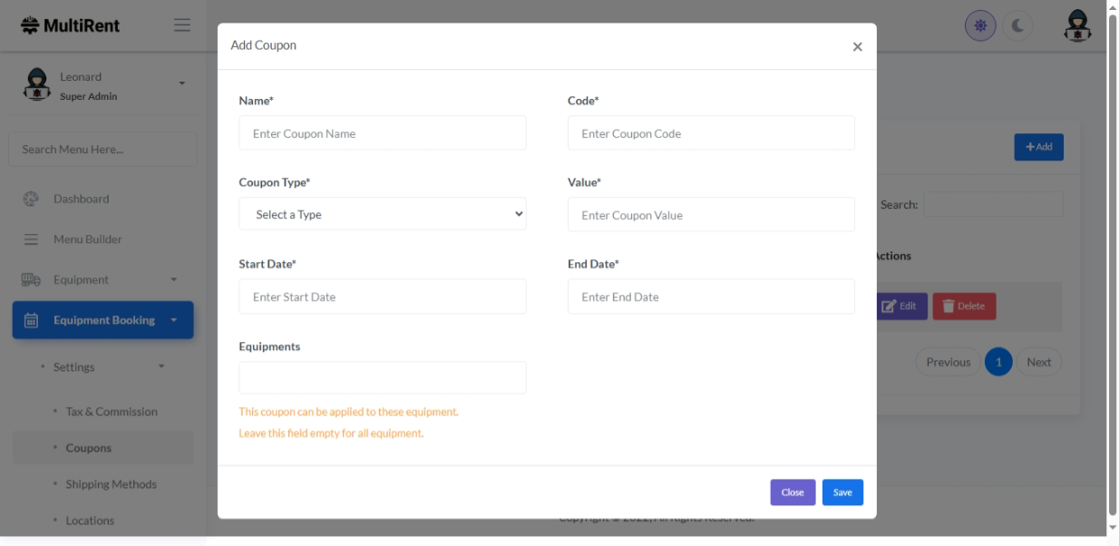 MultiRent also provides Commissions, Reports, Transaction Reports, Monthwise Earning Reports, Tax, Coupon, All Kinds of Management, Drag & Drop Menu Builder, Popup Banner Builder, PWA Installability, Push Notification, Google Login, Facebook Login, Advertisements, Google Adsense Support, Admin Role Permission & much more...