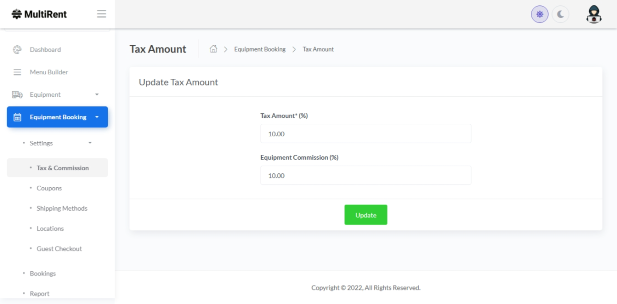 Admin can set commission percentage for each Equipment bookings. Vendors can withdraw their earnings. Admin can also charge on the withdrawals too