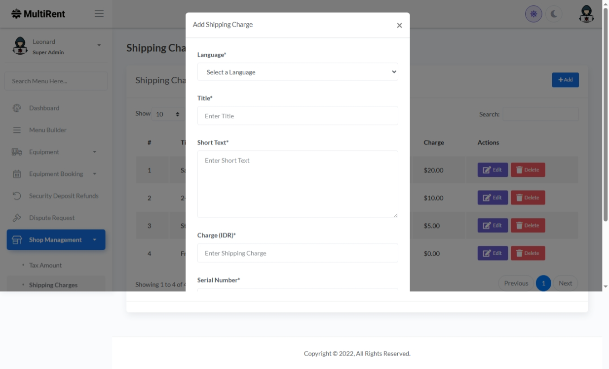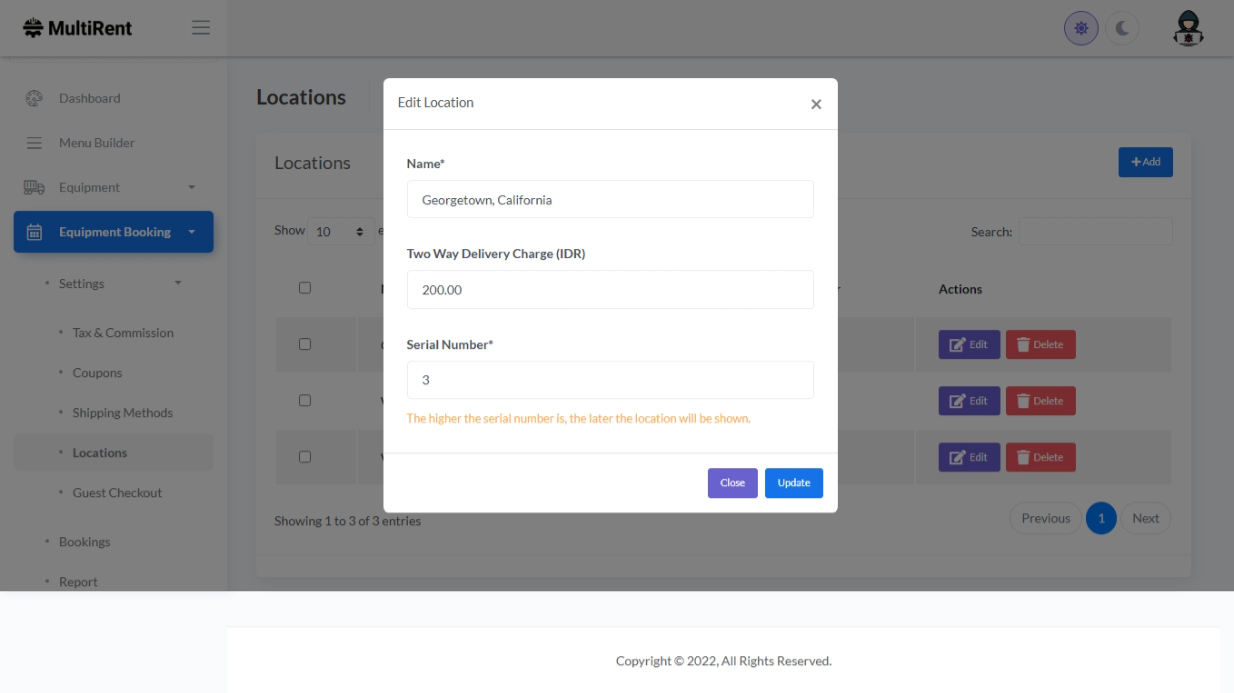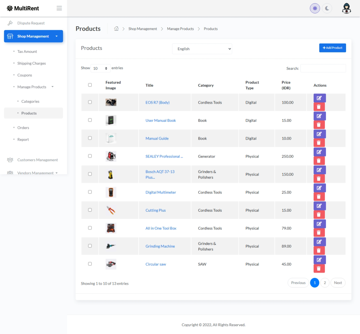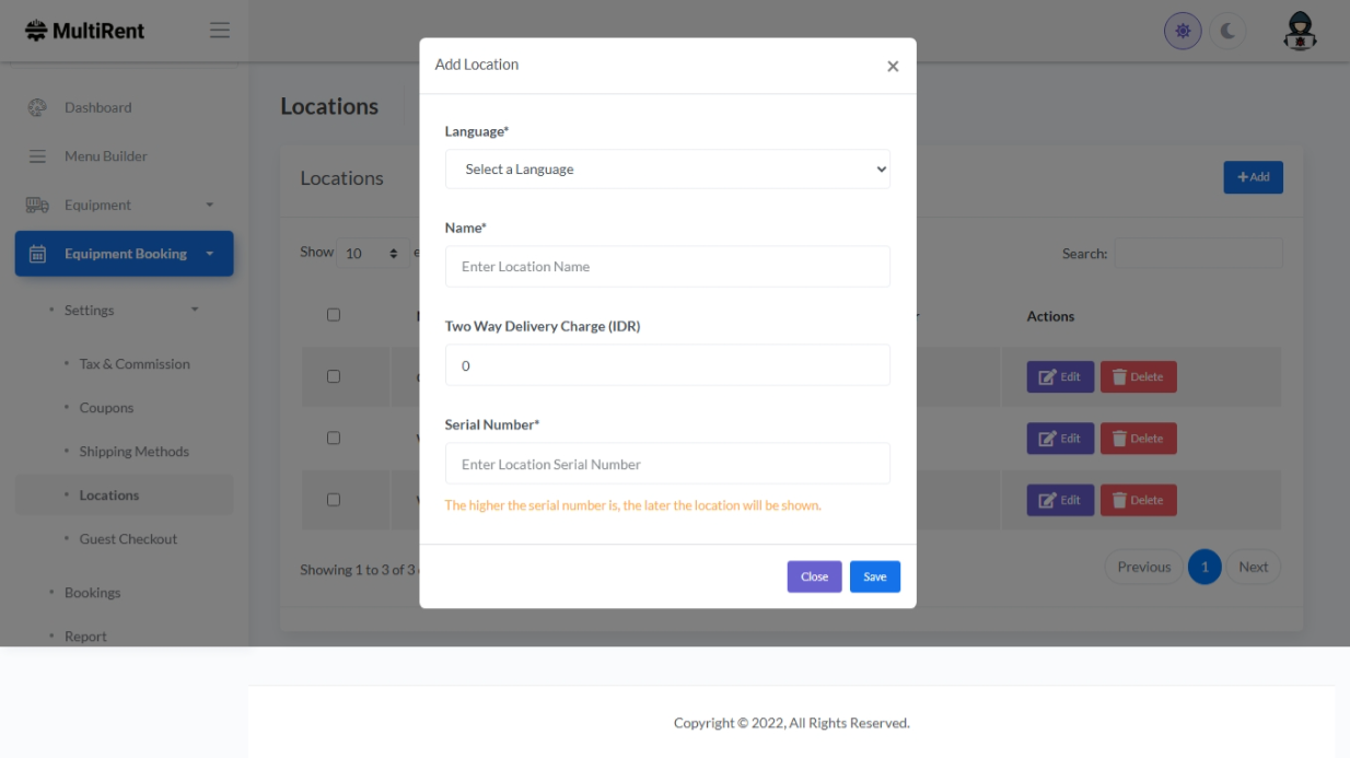 MultiRent also provides Commissions, Reports, Transaction Reports, Monthwise Earning Reports, Tax, Coupon, All Kinds of Management, Drag & Drop Menu Builder, Popup Banner Builder, PWA Installability, Push Notification, Google Login, Facebook Login, Advertisements, Google Adsense Support, Admin Role Permission & much more...