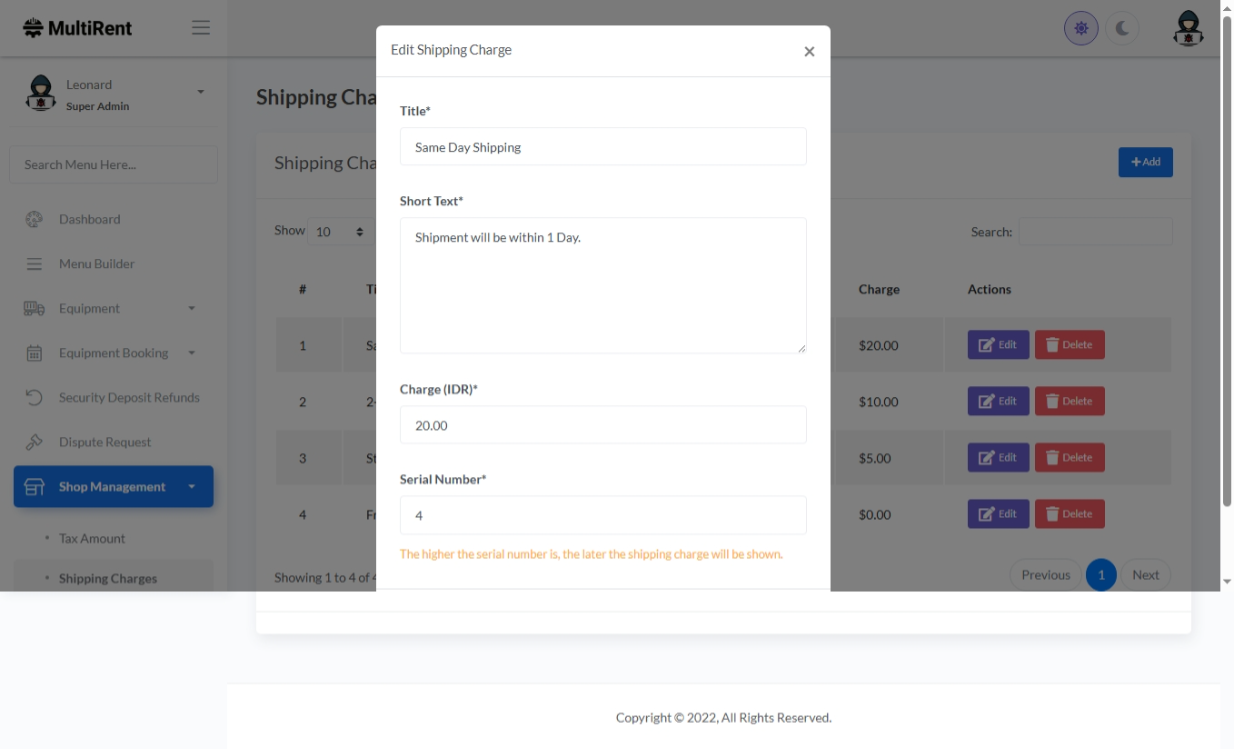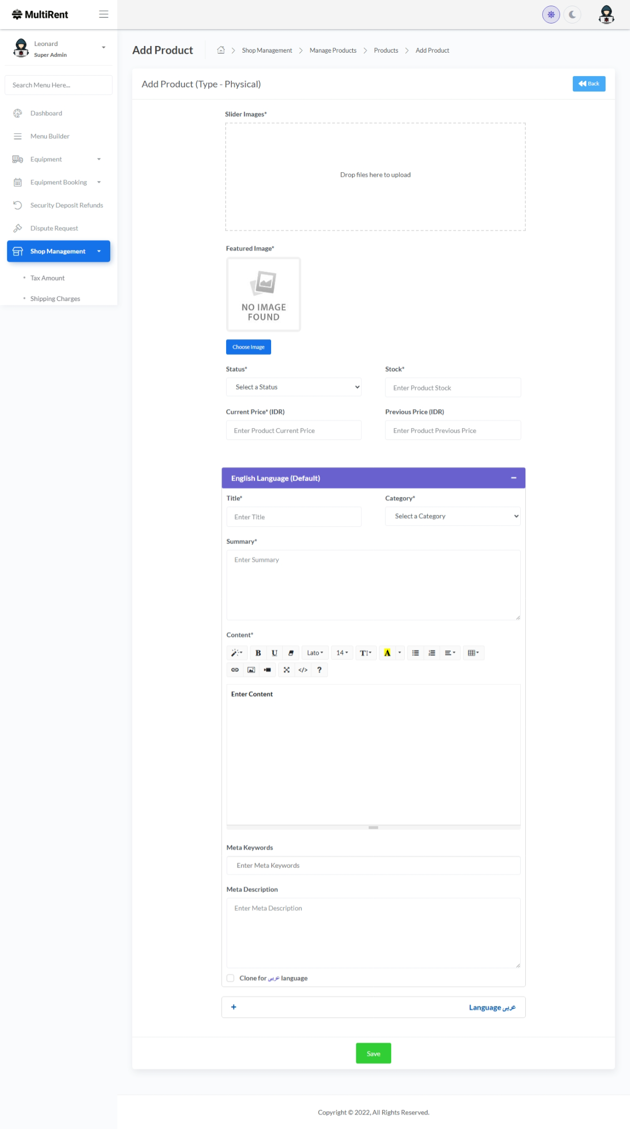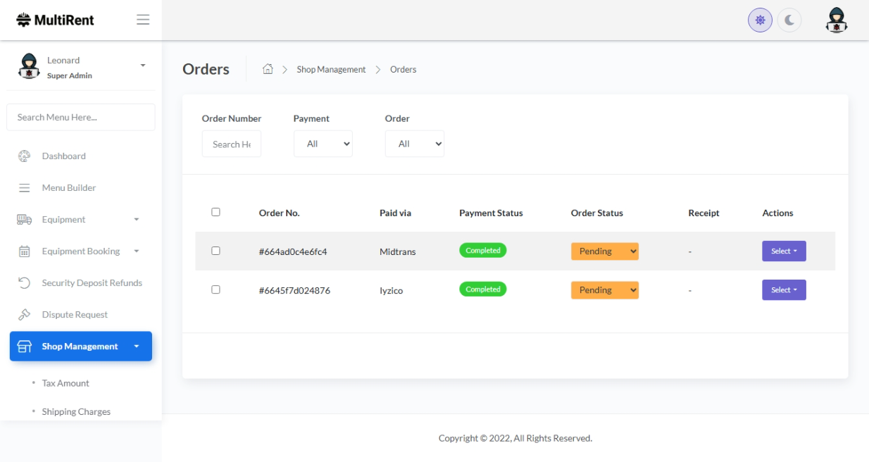 MultiRent also provides Commissions, Reports, Transaction Reports, Monthwise Earning Reports, Tax, Coupon, All Kinds of Management, Drag & Drop Menu Builder, Popup Banner Builder, PWA Installability, Push Notification, Google Login, Facebook Login, Advertisements, Google Adsense Support, Admin Role Permission & much more...