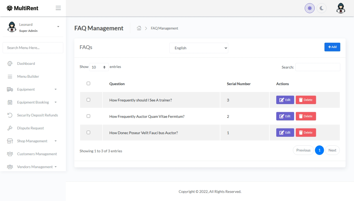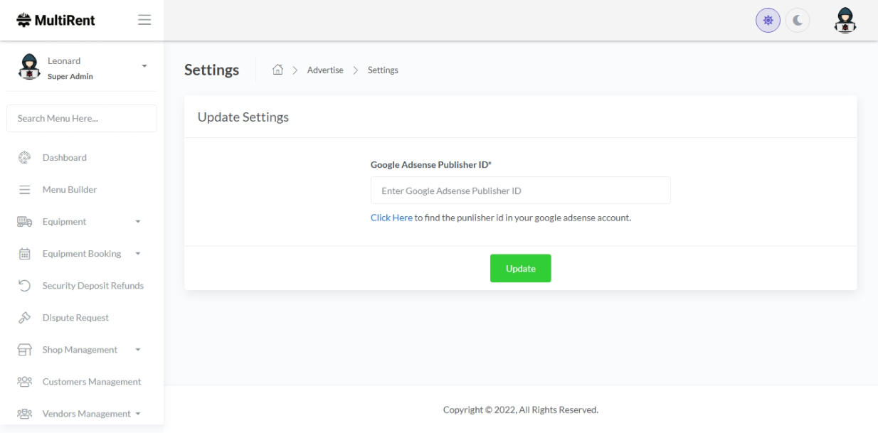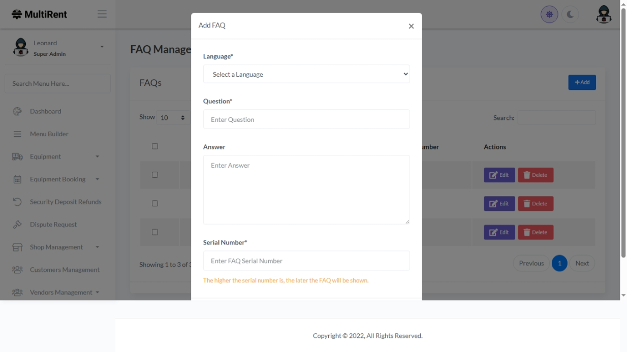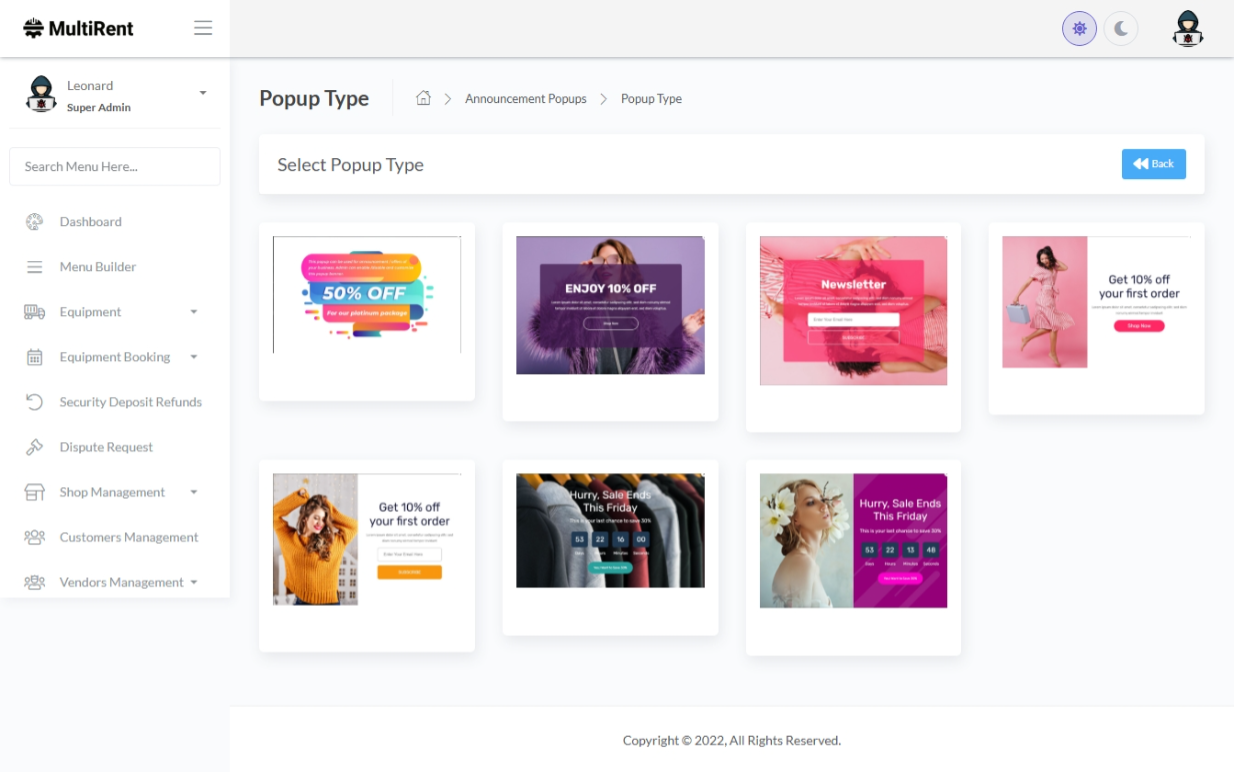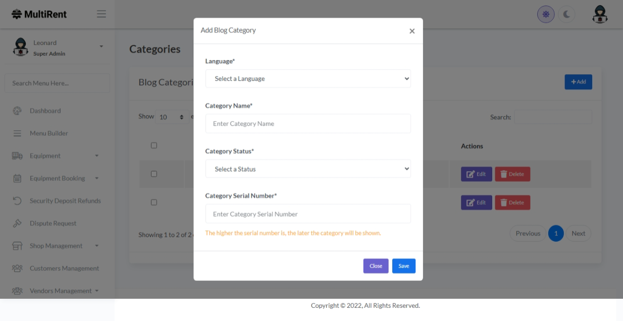 MultiRent also provides Commissions, Reports, Transaction Reports, Monthwise Earning Reports, Tax, Coupon, All Kinds of Management, Drag & Drop Menu Builder, Popup Banner Builder, PWA Installability, Push Notification, Google Login, Facebook Login, Advertisements, Google Adsense Support, Admin Role Permission & much more...