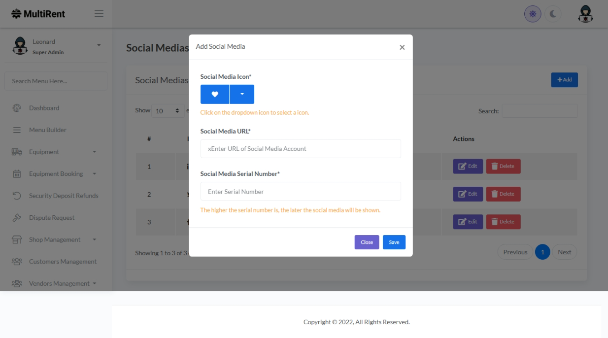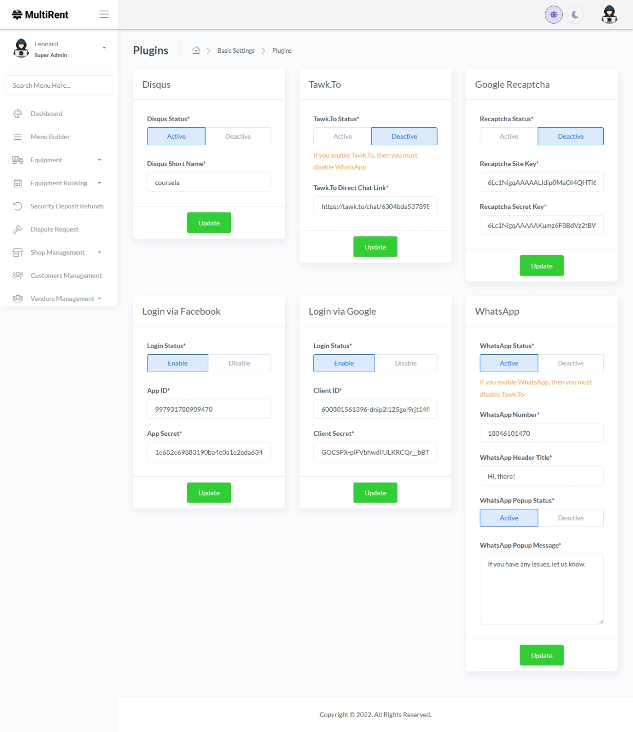 MultiRent also provides Commissions, Reports, Transaction Reports, Monthwise Earning Reports, Tax, Coupon, All Kinds of Management, Drag & Drop Menu Builder, Popup Banner Builder, PWA Installability, Push Notification, Google Login, Facebook Login, Advertisements, Google Adsense Support, Admin Role Permission & much more...