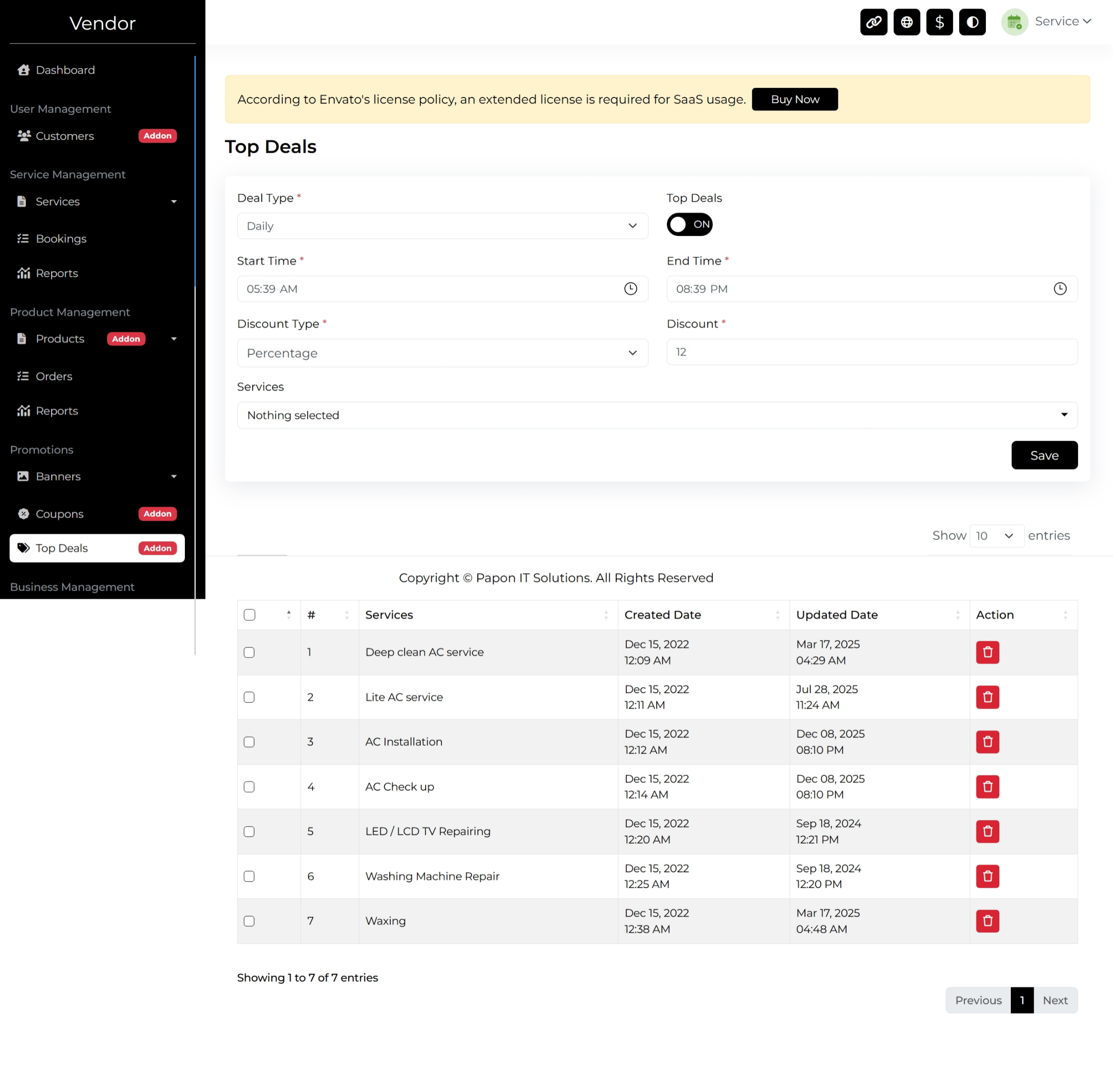 - Multiple Payment Getaway Management (COD, Razorpay, Stripe, Paystack, Flutterwave, Paypal, Marcadopago, My Fatoorah, ToyyibPay, PayTabs, Bank Transfer, khalti, mollie, PhonePe, xendit)