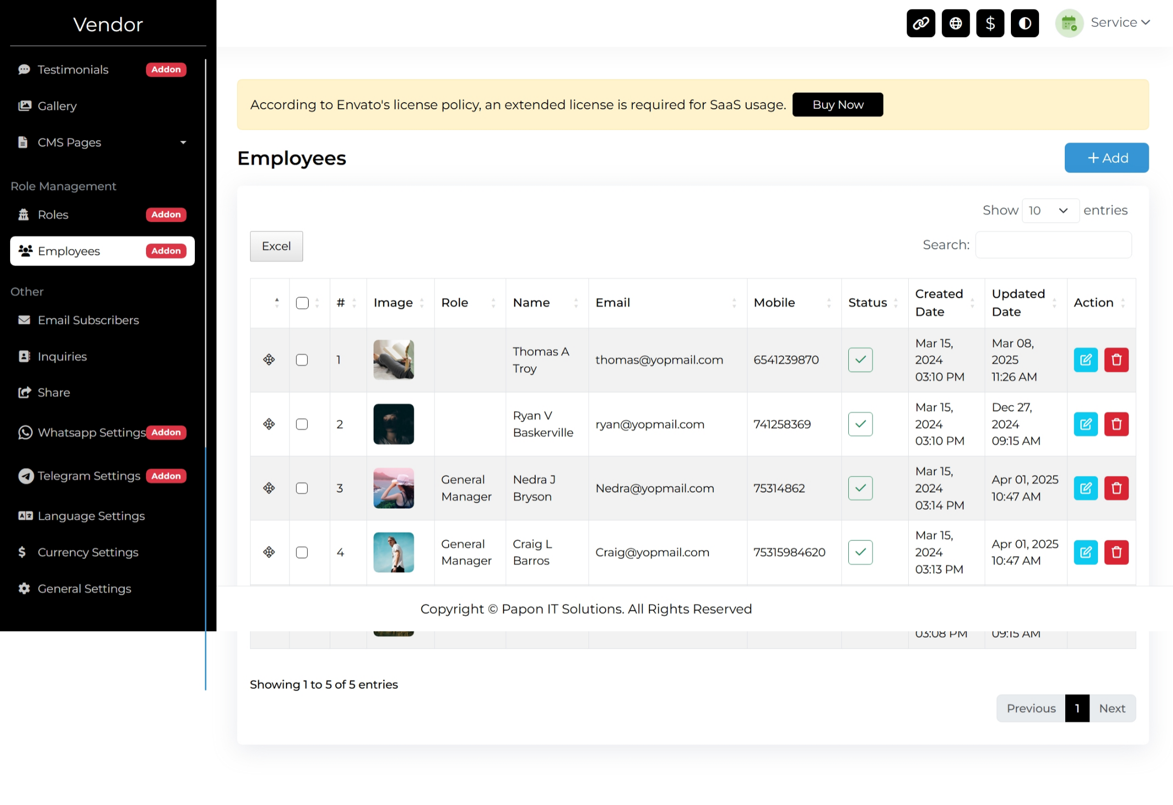 - Subscription Plans Status Option (Active / Inactive)