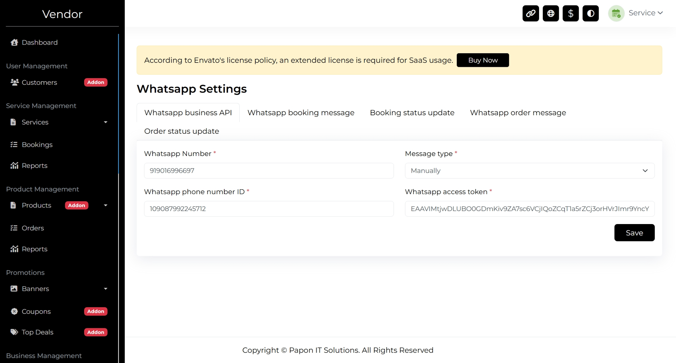 - Feature Highlight: Use the Send WhatsApp Message feature to instantly notify the vendor of a new booking via WhatsApp.