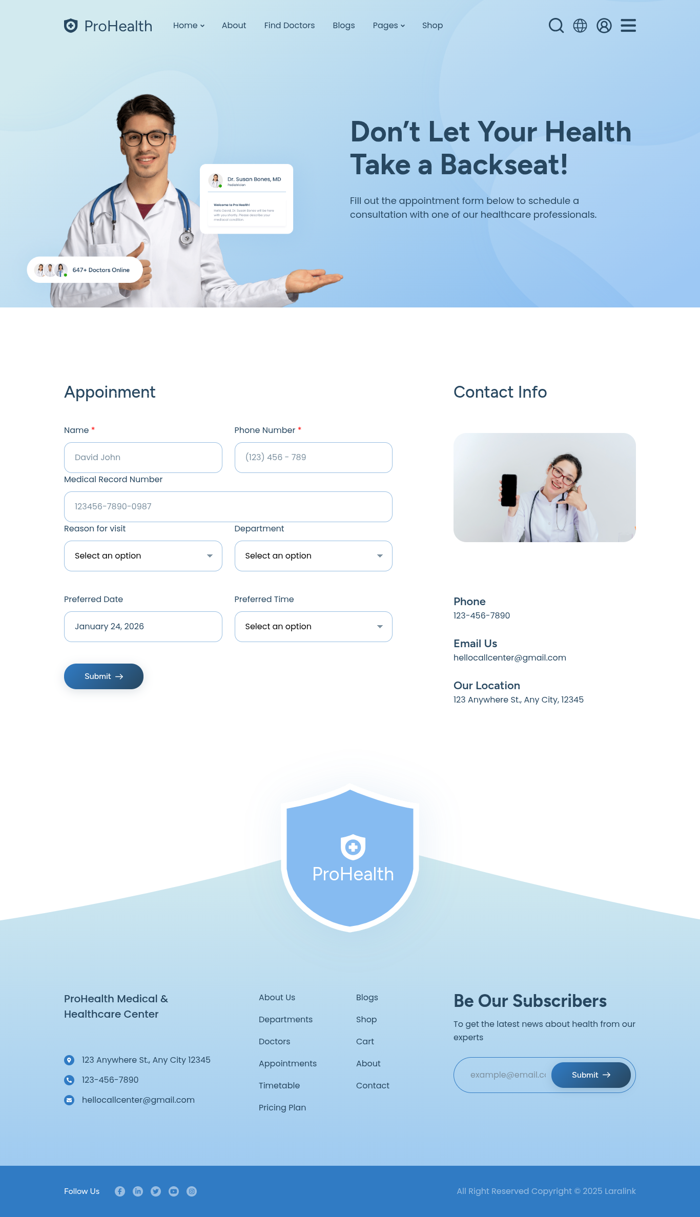 Medical and Healthcare With Live Page Builder Website is a modern, powerful healthcare solution built with Laravel, React, MySQL, and the intuitive LaraBuilder live page builder. Designed specifically for hospitals, clinics, medical centers, and healthcare professionals. With ProHealth, users can easily browse departments, find doctors, and book appointments directly from your website. Whether you’re running a multi-specialty hospital, private clinic, or telemedicine service, ProHealth offers the flexibility and features you need to provide a seamless patient experience online.