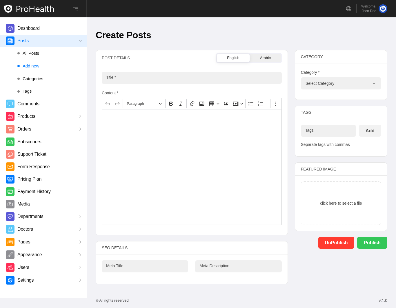 SEO Optimized – Prohealth code is SEO friendly, We take care of SEO things while writing code, and search engines will appreciate it. And also you can add meta title, meta description, meta tag, and OG image via our dashboard.