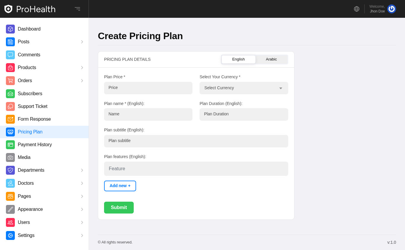 Payment Gateway – Prohealth support many payment methods like PayPal, Stripe, Razorpay, Flutterwave, SSLCommerz etc.