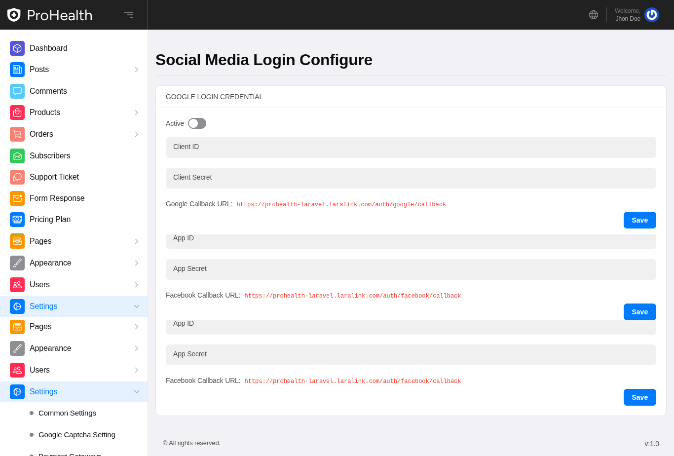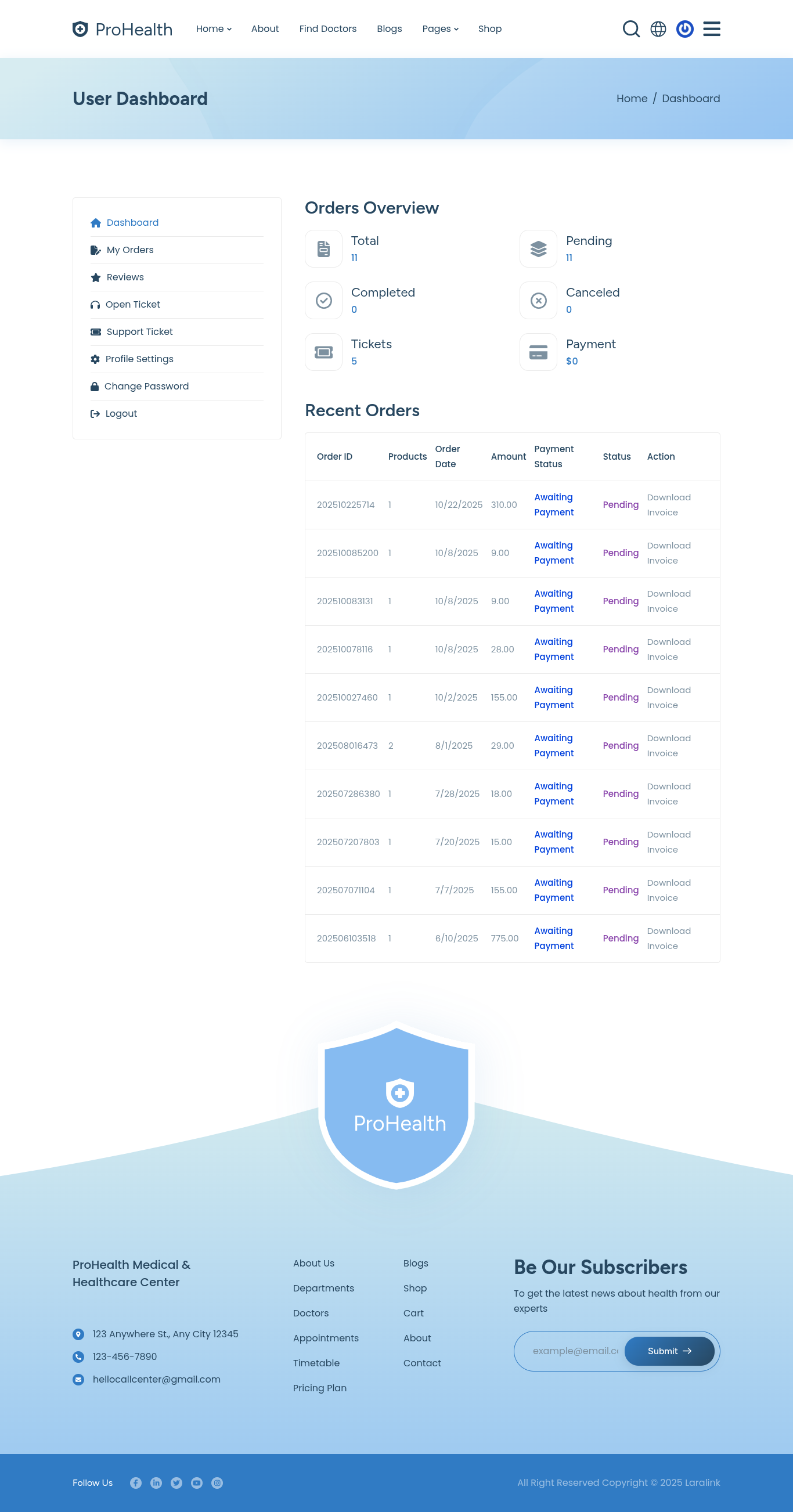 Payment Gateway – Prohealth support many payment methods like PayPal, Stripe, Razorpay, Flutterwave, SSLCommerz etc.