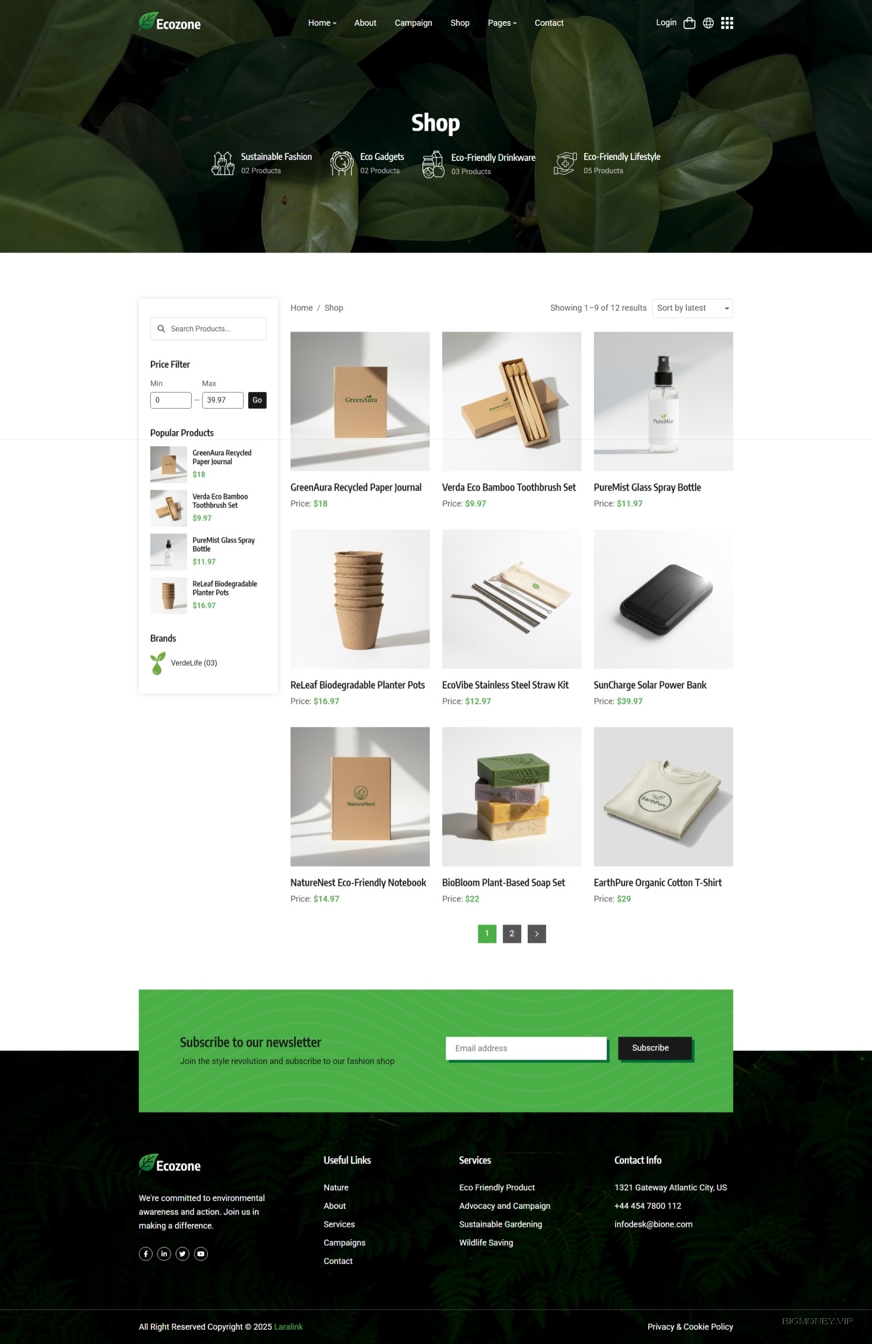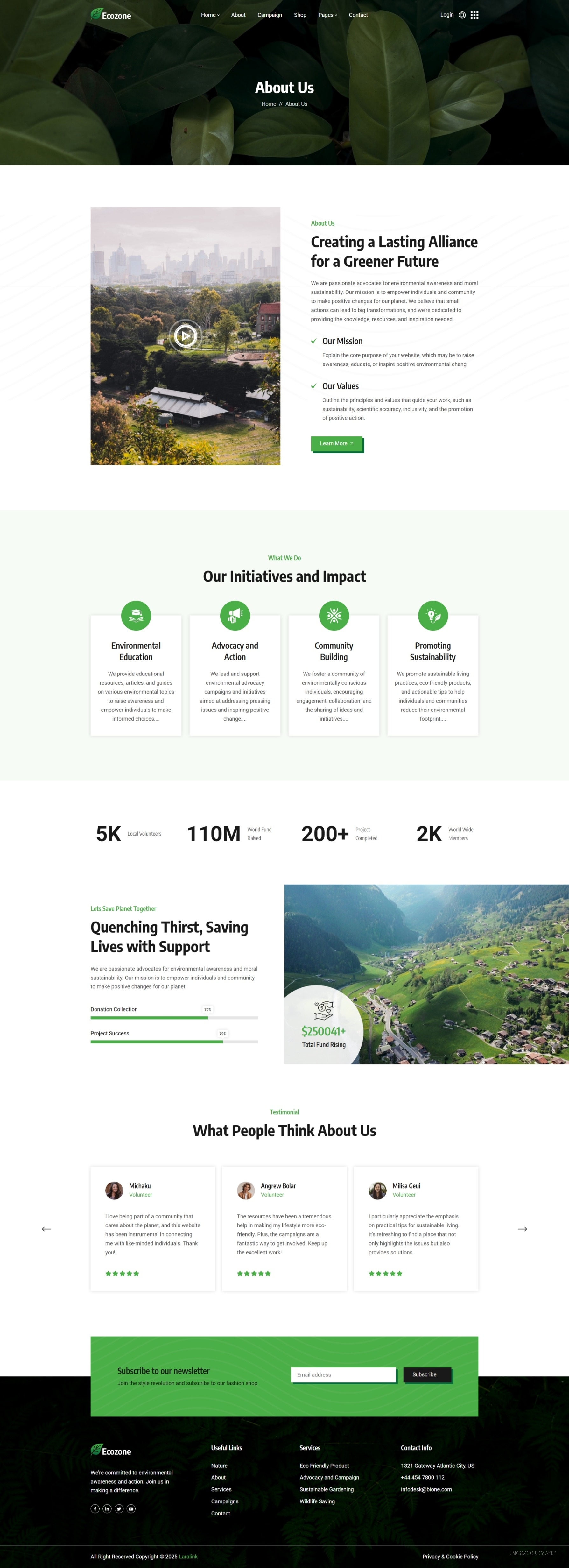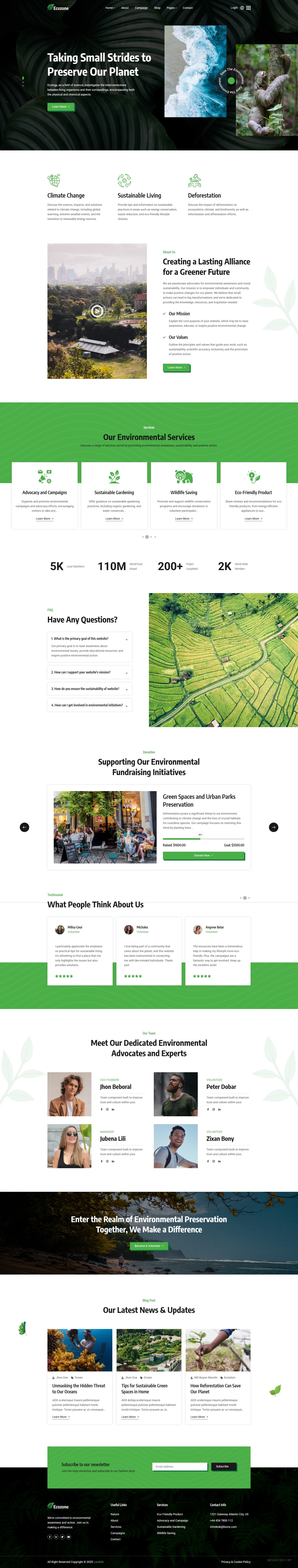 Welcome to the future of Ecology & Environment website! Our cutting-edge Ecology & Environment Laravel site is a powerhouse built with the latest technologies, including Laravel, React, MySQL and LaraBuilder live page builder. Designed specifically for Ecology, Environmental projects, Non-profit organizations, Nature, Animal, Recycling, Agriculture, Ocean Life, Charity, Donation, Campaigning, Climate Change, Green initiatives and much more.