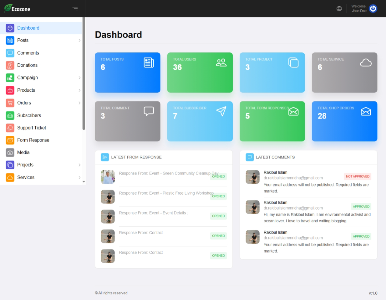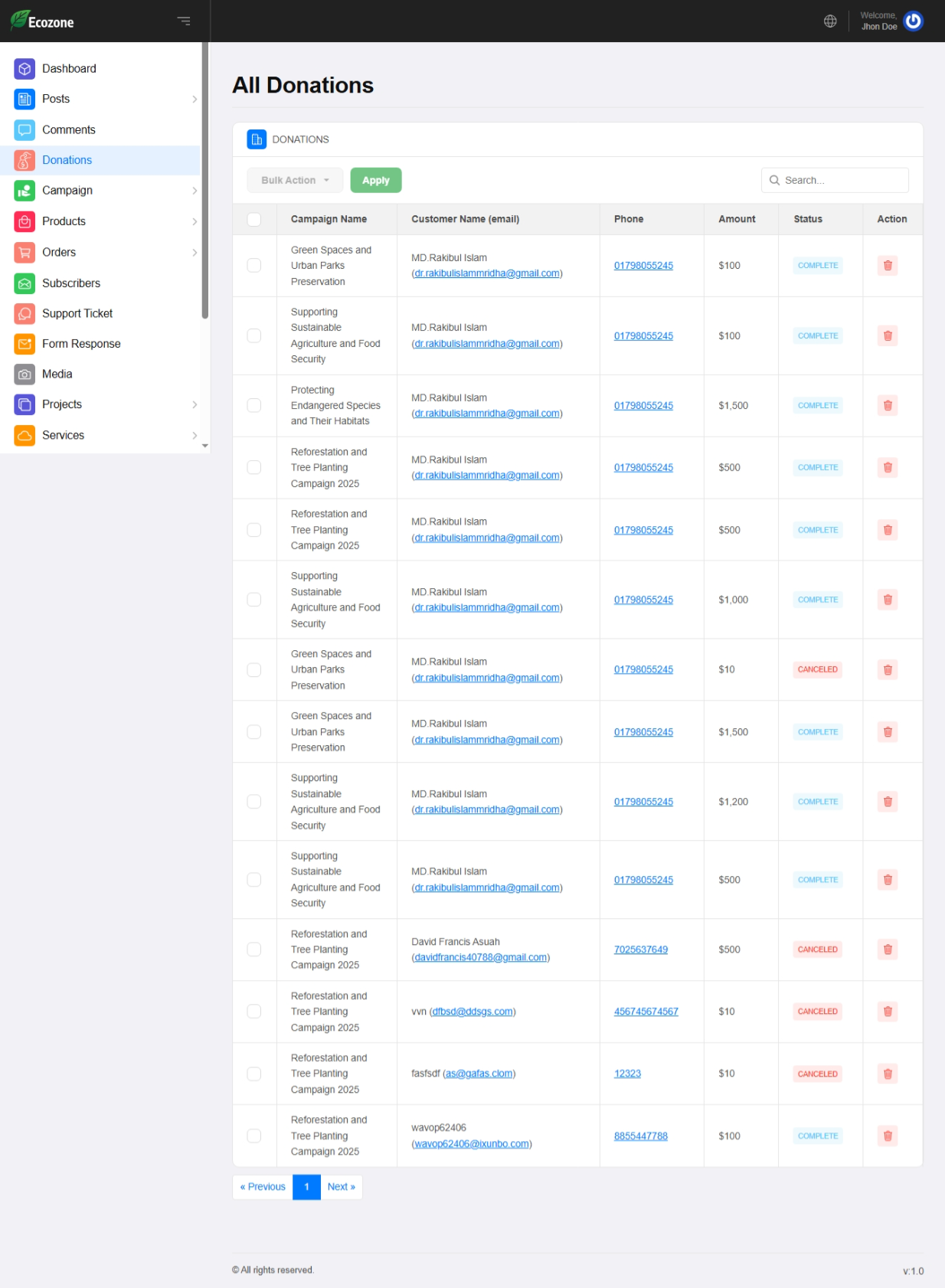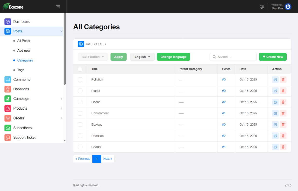 Donation Function – The Ecozone Laravel CMS includes a powerful and secure donation management system designed for environmental NGOs, charities, and sustainability organizations. With seamless online donation processing, donors can contribute instantly through multiple payment methods, helping your mission grow faster. The system provides real-time donation tracking, automated receipts, customizable donation forms, and full integration with your website’s pages through the Live Page Builder. Whether you’re collecting funds for tree plantation, wildlife protection, climate action, or community development, the donation function ensures a smooth and trustworthy experience for supporters.