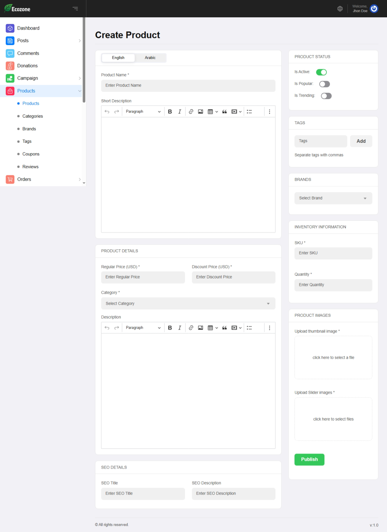 SEO Optimized – Ecozone code is SEO friendly, We take care of SEO things while writing code, and search engines will appreciate it. And also you can add meta title, meta description, meta tag, and OG image via our dashboard.