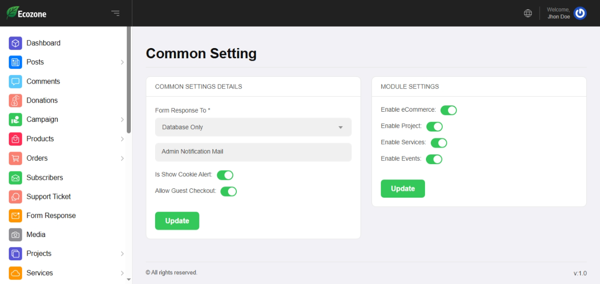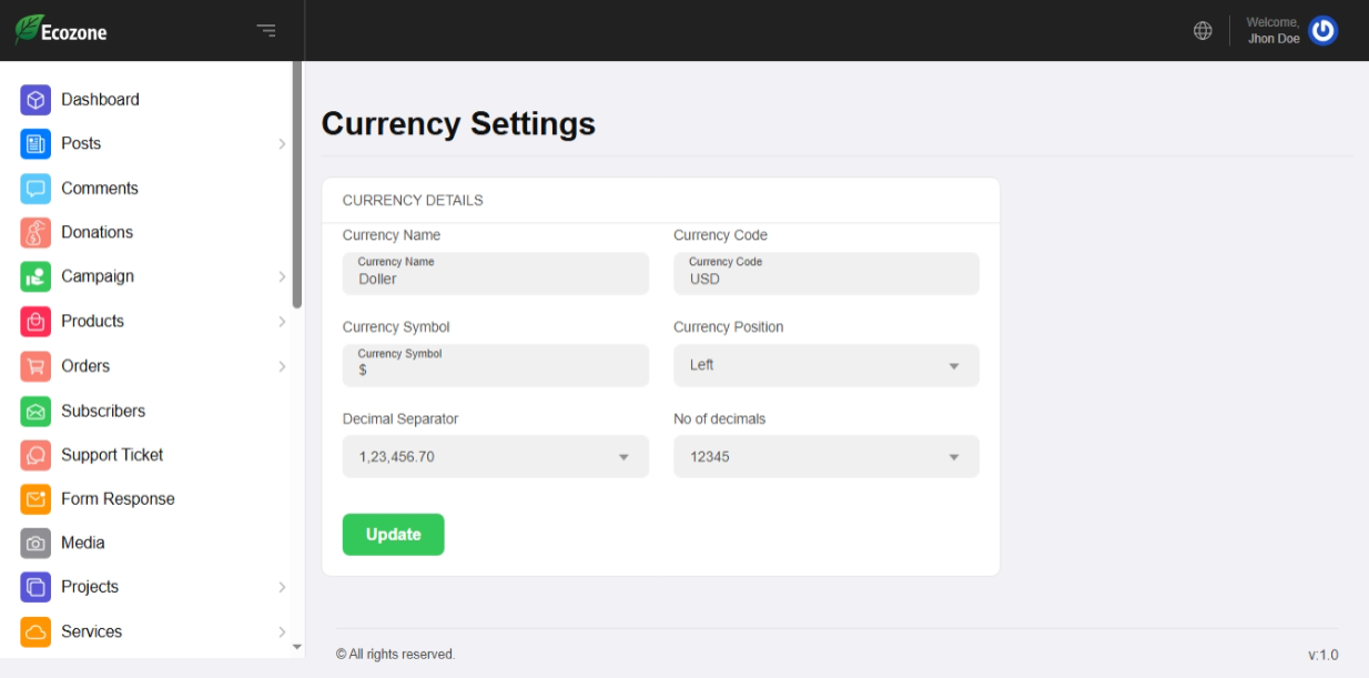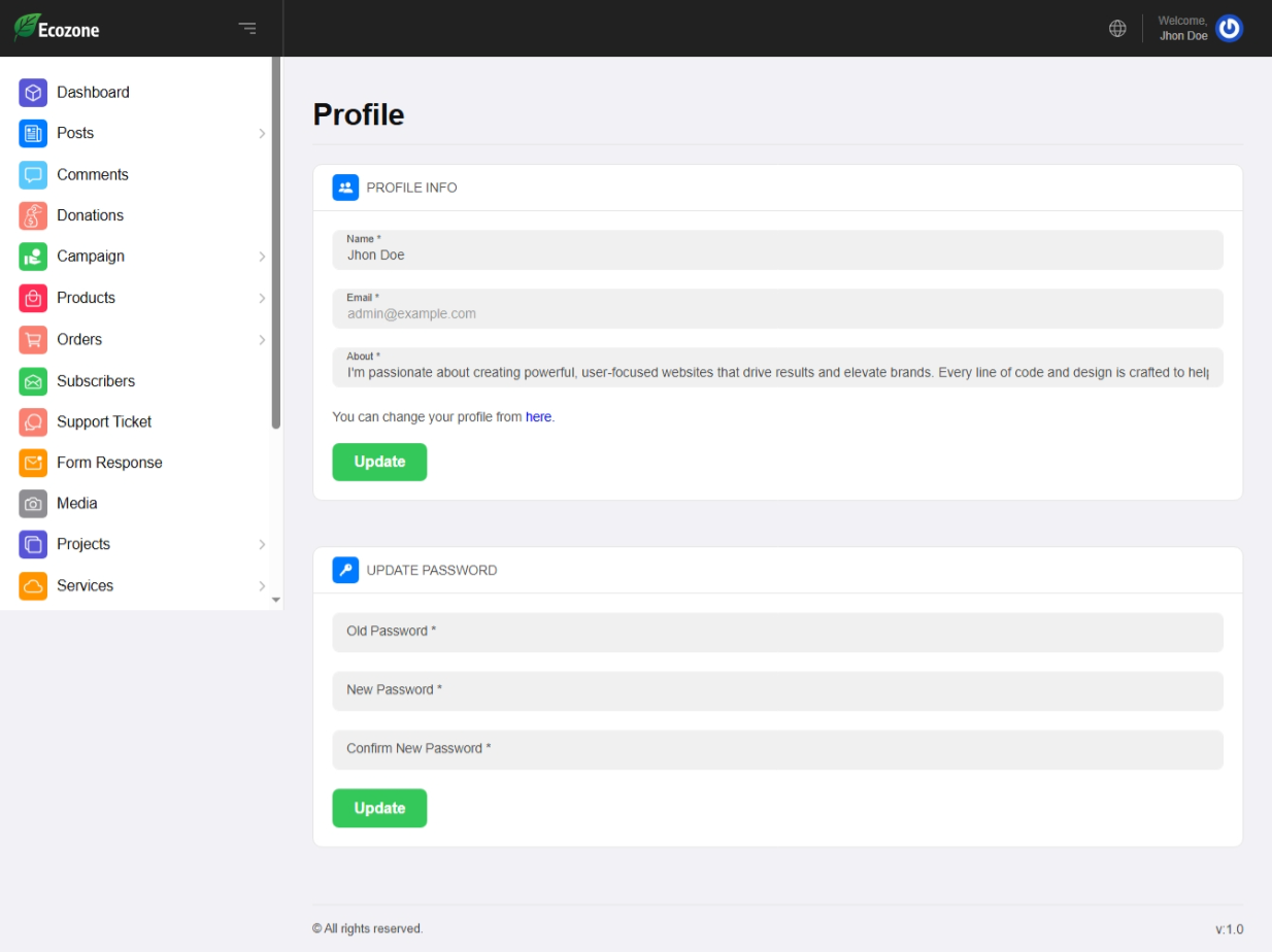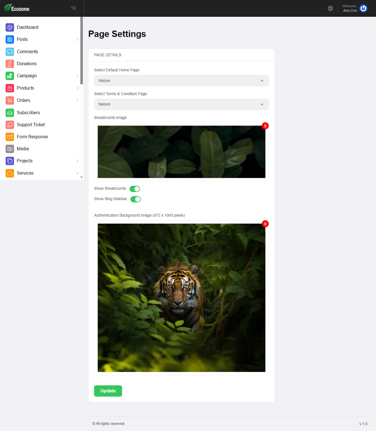 Donation Function – The Ecozone Laravel CMS includes a powerful and secure donation management system designed for environmental NGOs, charities, and sustainability organizations. With seamless online donation processing, donors can contribute instantly through multiple payment methods, helping your mission grow faster. The system provides real-time donation tracking, automated receipts, customizable donation forms, and full integration with your website’s pages through the Live Page Builder. Whether you’re collecting funds for tree plantation, wildlife protection, climate action, or community development, the donation function ensures a smooth and trustworthy experience for supporters.