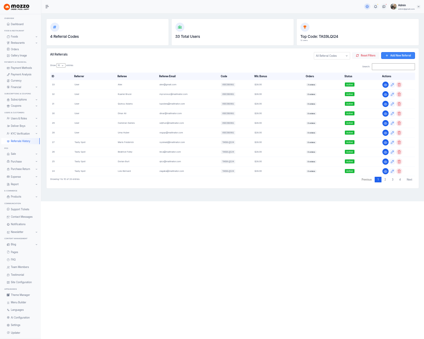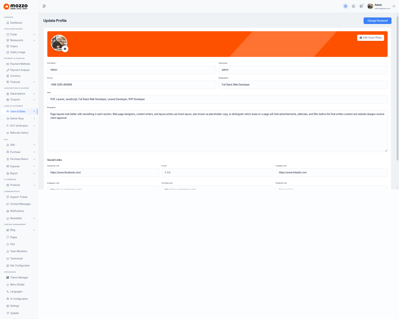 - User friendly codes and easy to navigate (Menu builder, Theme Section Customization, Theme Management, Ai System, Food System, Restaurant System, Wallet System, Subscription System, Payment System, Delivery Boy System, etc)