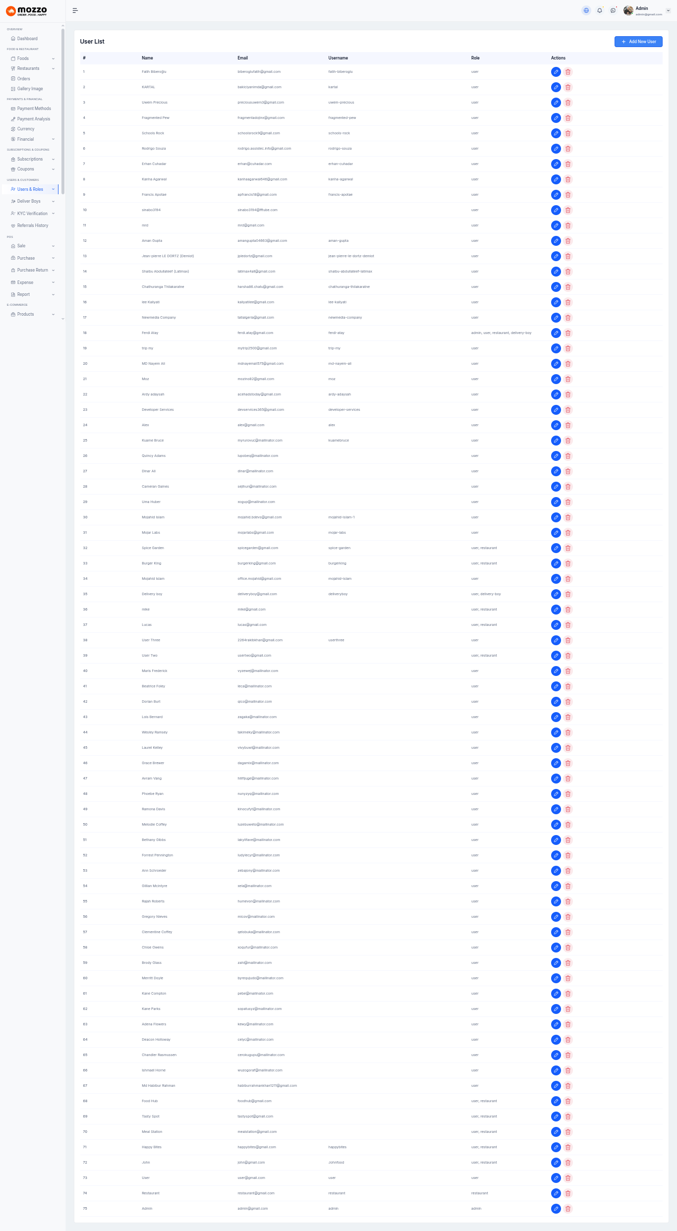 - Admin/User/Restaurant/Delivery Boy Management