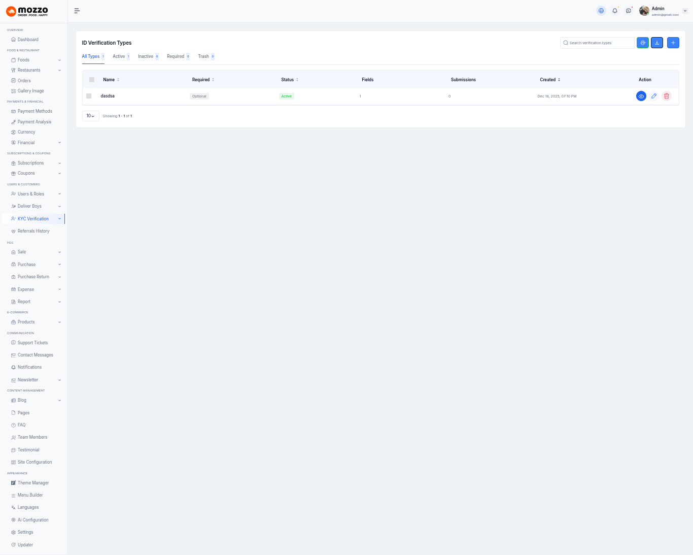 - Dynamic Kyc Types Add/Edit/Delete Option
