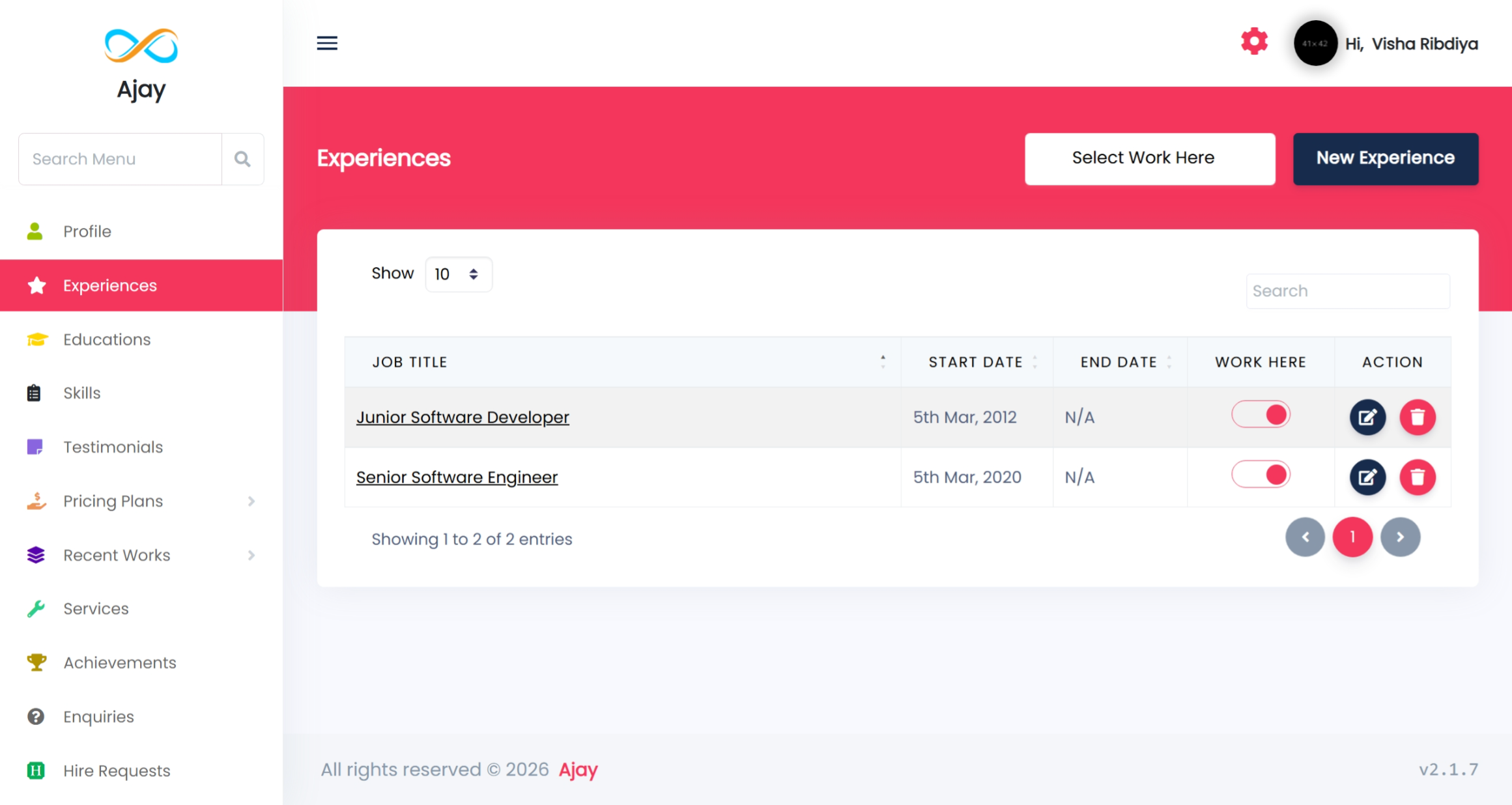 You can add your works by category from the admin side, and it will be displayed on the front side.