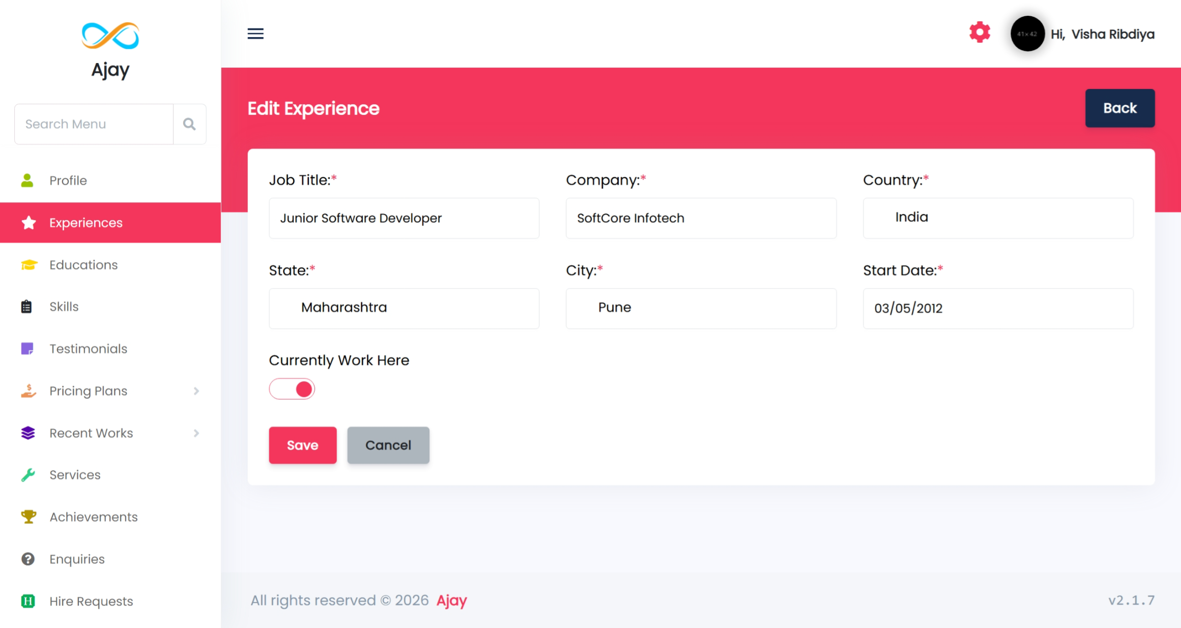 You can update the job title and your details from this page. Also, you can upload his profile image too in this section.