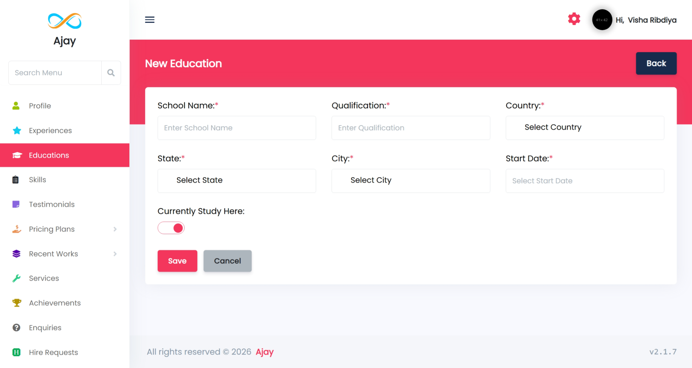 You can add all your qualifications details by using this feature. You can add multiple educations and all of that will be shown on the front side.
