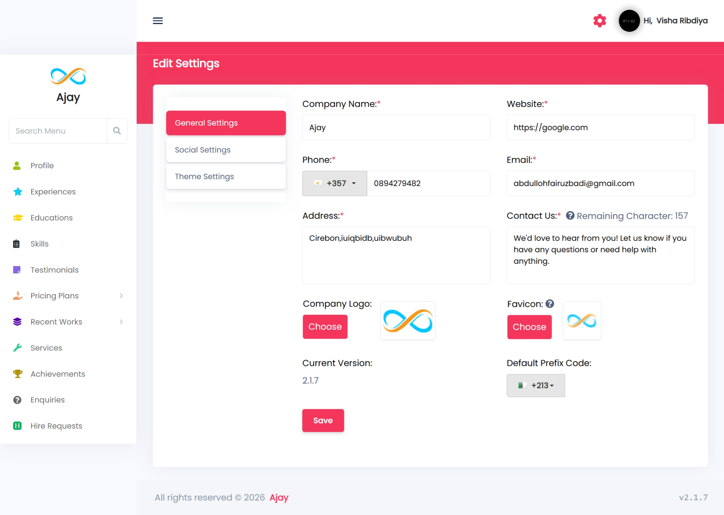 You can configure the Company name, Logo, Footer texts and other stuff’s from this section.